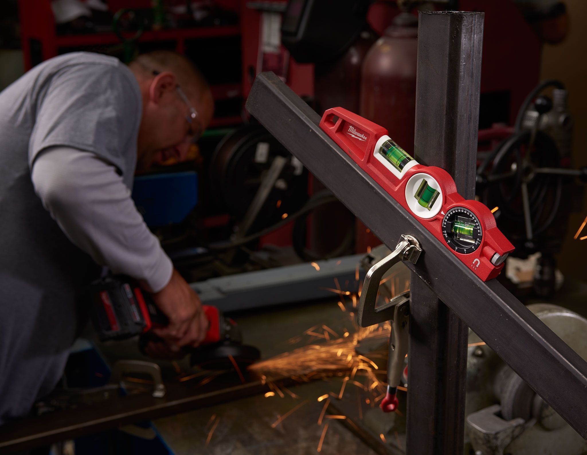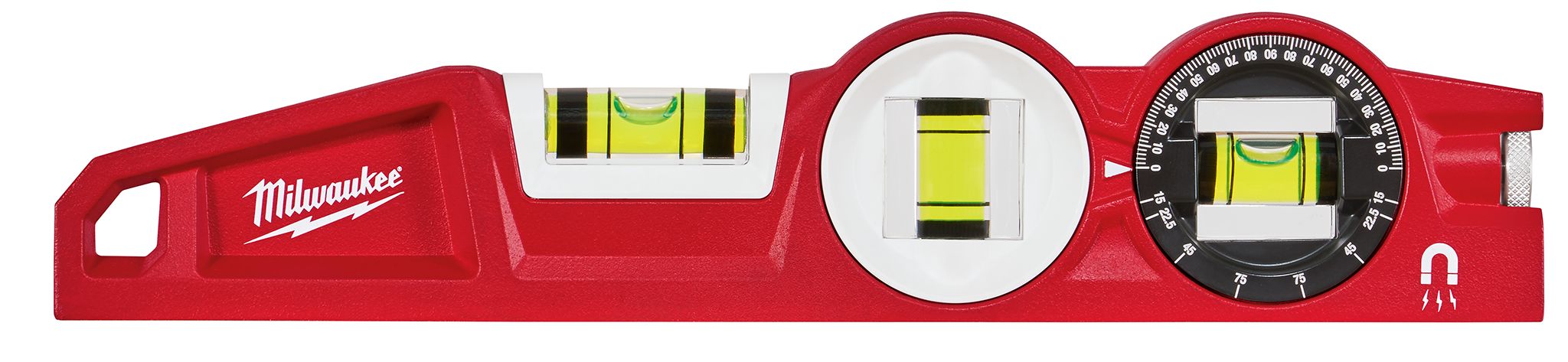 Le niveau torpille moulé sous pression Milwaukee de 25 cm (10") est doté de la technologie de fiole grossissante SHARPSITE™ pour une lecture précise et nette, quelle que soit la position. La fiole réglable à 360° permet de régler ou d'identifier n'importe quel angle, et le système de verrouillage garantit une précision optimale, même lors de la mise en place et du retrait du niveau. Les aimants en terres rares amplis se fixent aux matériaux métalliques et offrent une force de maintien deux fois supérieure à celle des principaux concurrents. Le cadre robuste en aluminium moulé sous pression et la boucle anti-chute garantissent une durabilité à vie et une sécurité optimale sur le chantier.