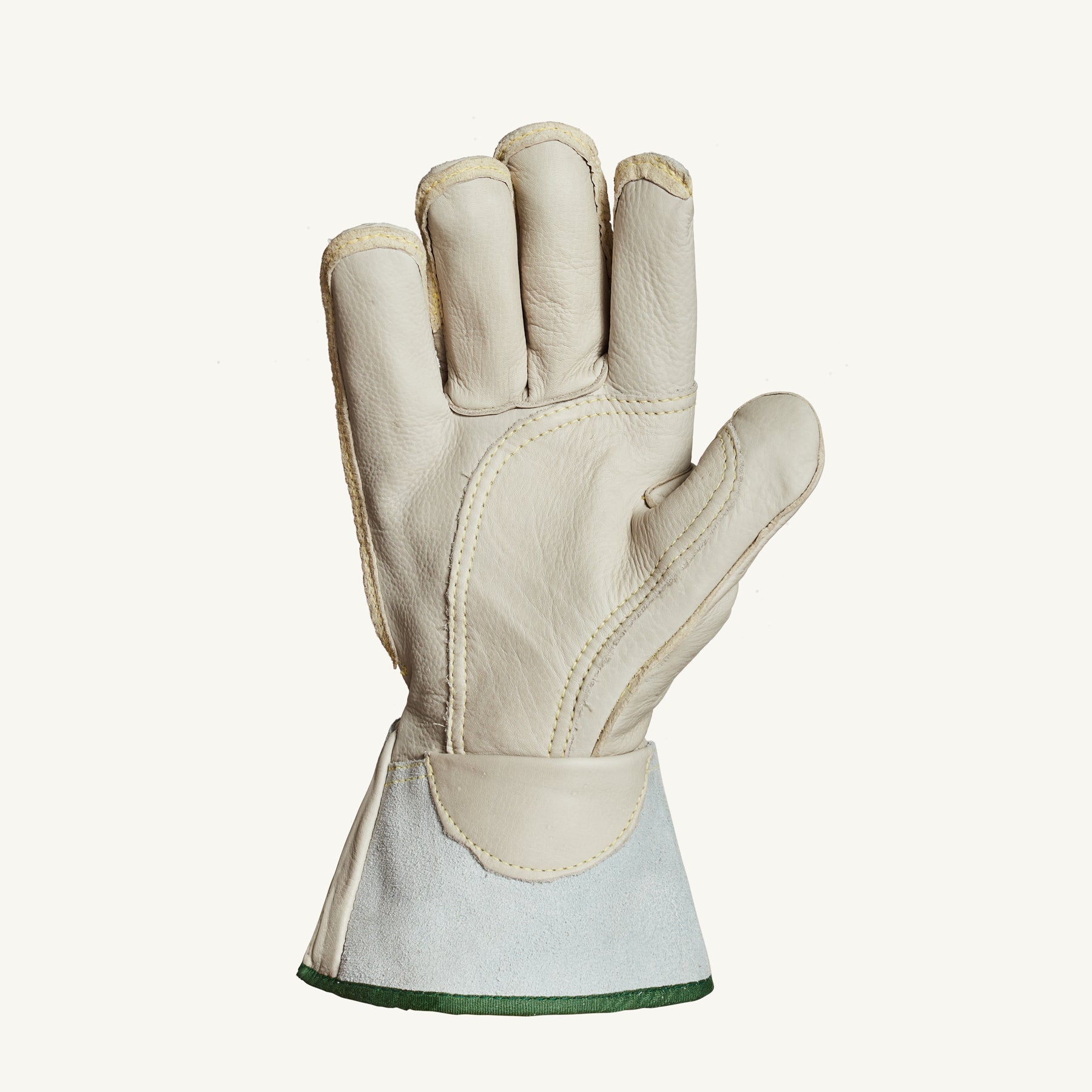 Gants de monteur de lignes avec protection modérée contre les coupures et poignets haute visibilité de 2 pouces pour un enfilage et un retrait faciles.