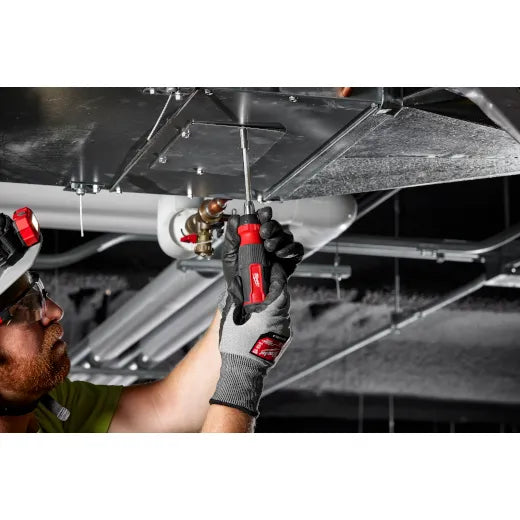 Le tournevis à cliquet multi-embouts 14 en 1 de Milwaukee est le tournevis multi-embouts le plus polyvalent. Ce tournevis multi-embouts est doté d'un rangement à accès facile dans la poignée qui permet de garder les embouts organisés, vous permettant de changer rapidement de taille et de type d'embout. Le cliquet durable entièrement en métal permet un couple plus élevé et une conduite plus rapide. Le porte-embout amovible est doté d'une tige hexagonale de 1/4", ce qui en fait un outil électrique prêt pour une polyvalence maximale sur le chantier. Le porte-embout chromé offre une protection contre la rouille et réduit l'usure due aux éléments sur le chantier. Notre tournevis à cliquet multi-embouts 14 en 1 Milwaukee® est couvert par notre garantie à vie limitée.