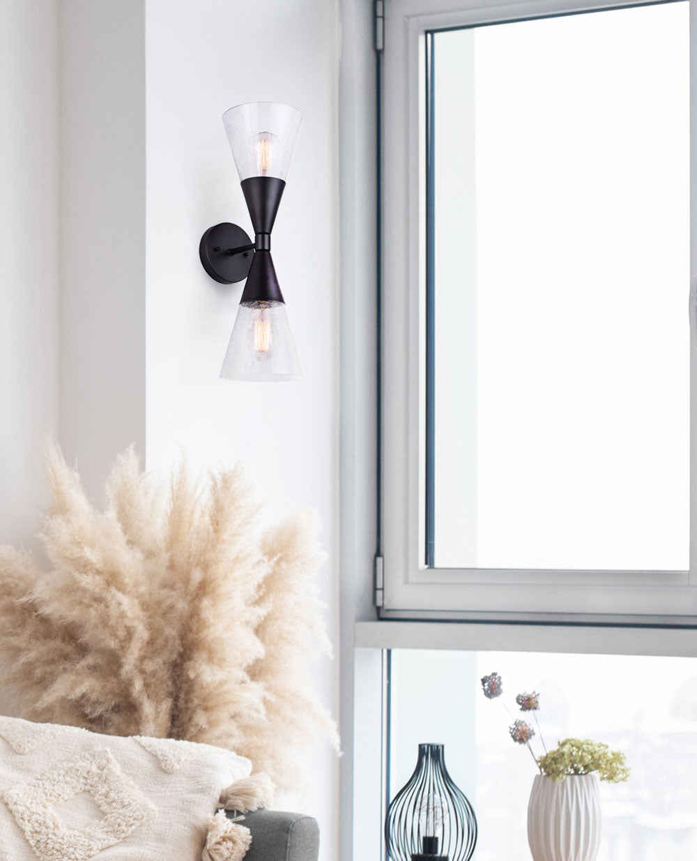 Élégamment simple, LILLIAN ajoute une texture visuelle avec l'inclusion de verre craquelé dans sa conception de sablier. Avec une allure crépitante, LILLIAN veille à ce que les choses restent lumineuses tout en ajoutant de la personnalité à votre espace de manière ludique. Pour ajouter encore plus de piquant, vous avez le choix entre une belle finition dorée ou un noir mat tendance, selon votre style et votre désir pour votre environnement.