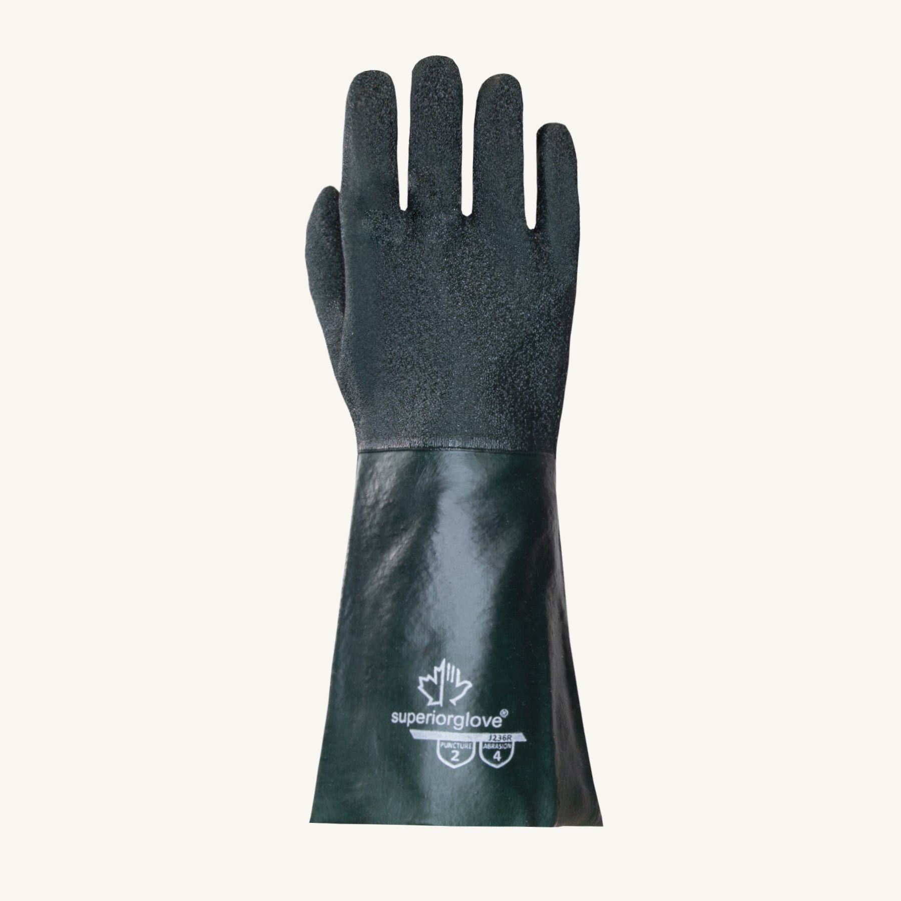 Ces gants Chemstop™ J236R résistants aux produits chimiques sont dotés de manchettes allongées pour une protection accrue du poignet et d'une paume rugueuse pour une meilleure préhension. Idéals pour l'exploitation minière, la paume rugueuse offre une excellente adhérence antidérapante en conditions humides et huileuses, tandis que la coque en PVC offre une résistance aux produits chimiques et la doublure en coton assure un confort optimal. Les manchettes de 35,5 cm offrent une protection supplémentaire du poignet.