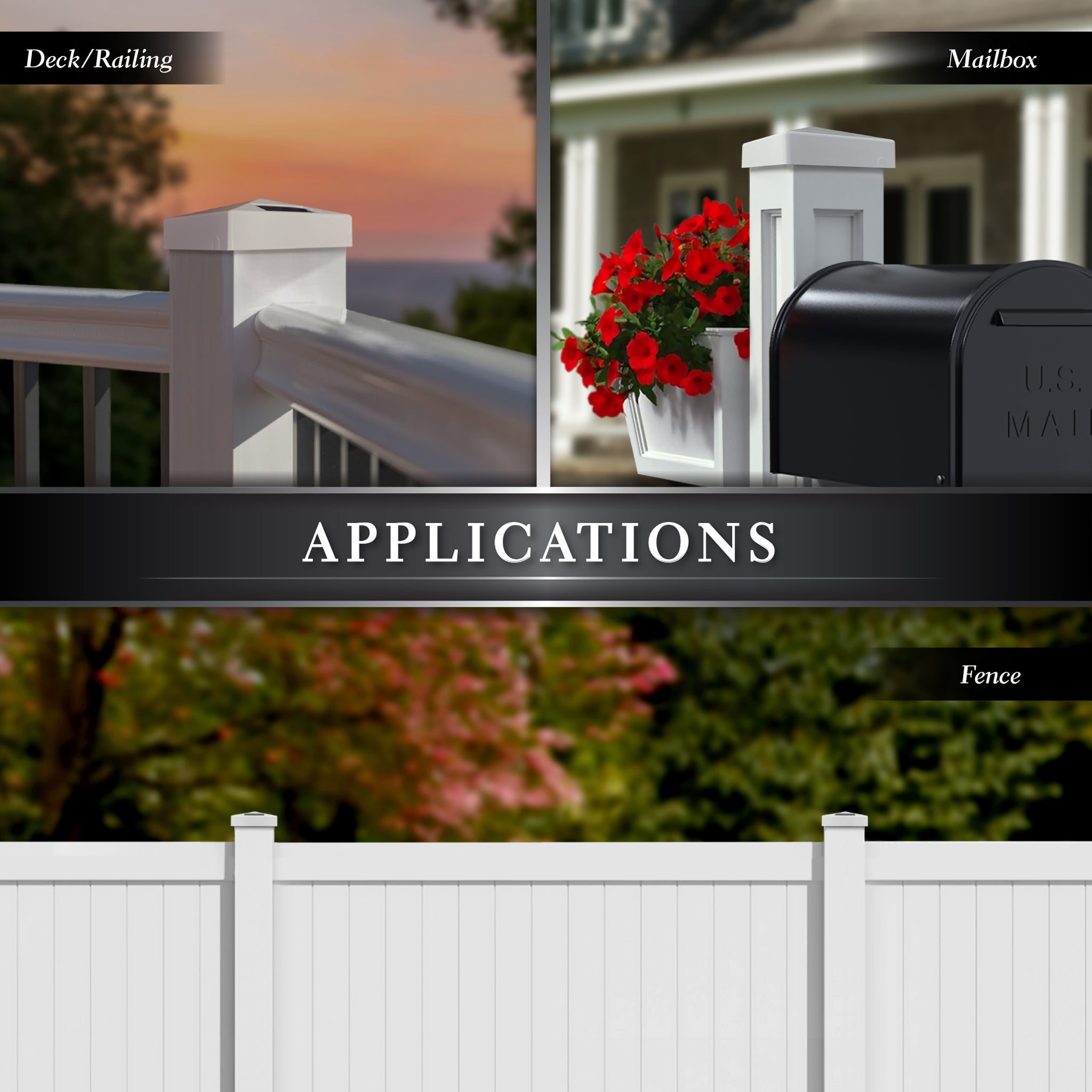 Notre capuchon de poteau solaire en vinyle pyramide de 4 "x 4" comprend quatre LED à montage en surface à haut rendement qui sont cachées à la vue, mais à la tombée de la nuit, cette conception brevetée unique en son genre projettera un ensemble de lumière sur les quatre côtés du capuchon de poteau et zone environnante... un style vraiment unique et exceptionnel uniquement de Classy Caps Mfg. S'adapte sur un véritable poteau de 4"x4".