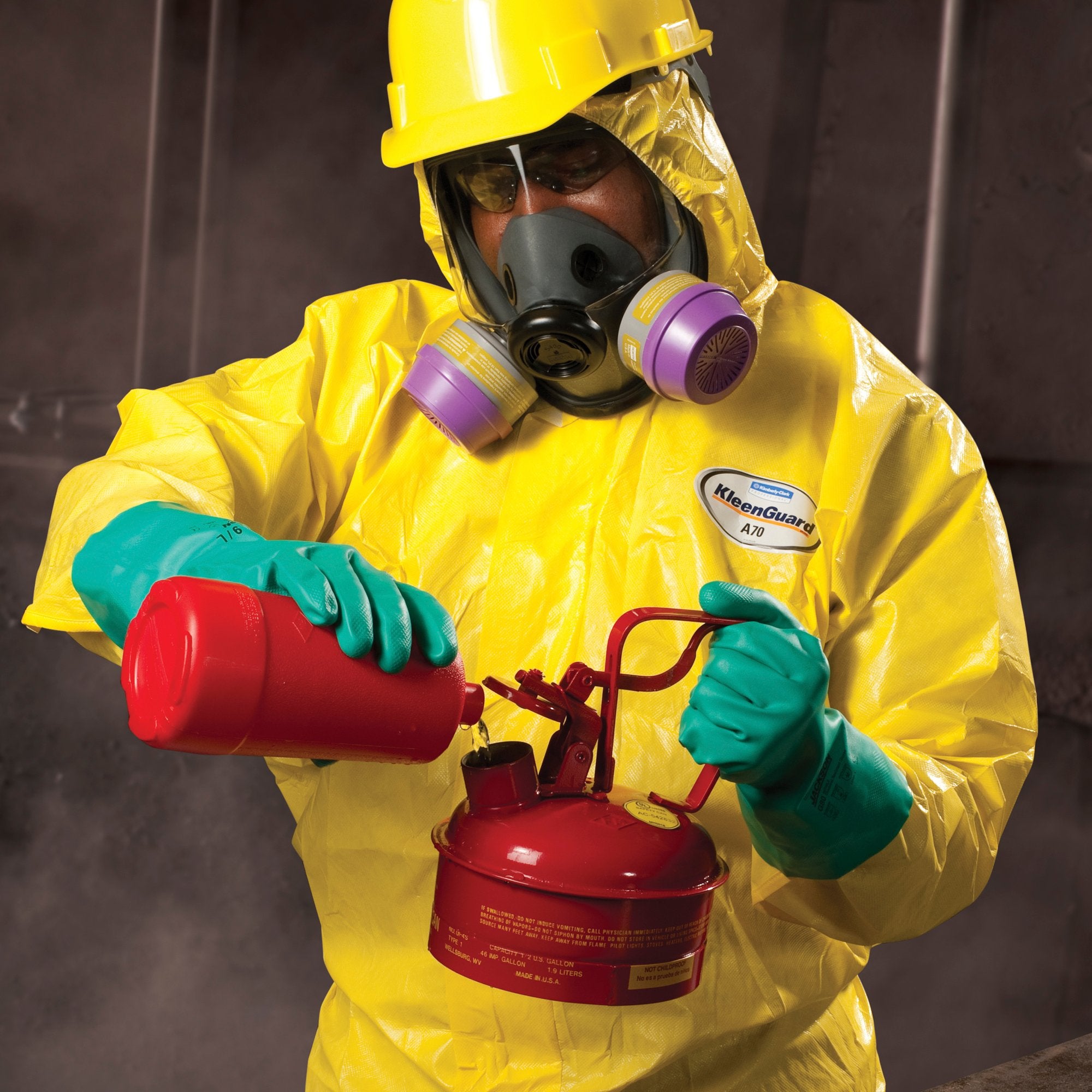 Les équipements de protection individuelle (EPI) KleenGuard™ optimisent votre productivité et la sécurité de vos employés. Les gants en nitrile résistants aux produits chimiques KleenGuard™ G80 constituent un choix de protection incontournable. Ils offrent un produit et un emballage de qualité, alliant résistance chimique, durabilité et confort. De plus, leur emballage sans sachet imprimé ni encart séparé réduit les déchets. Ces gants protègent contre les acides, les solvants, les produits caustiques, les bases chimiques et autres solutions aqueuses. D'une longueur de 33 cm (13 pouces), ils sont composés d'une formulation de nitrile modifiée pour une durabilité et une résistance chimique accrues, et leurs paumes et bouts de doigts texturés assurent une meilleure prise en main. Ces gants en nitrile verts ont une épaisseur de 0,38 mm (15 mil) et sont conformes à la norme EN374-AKL. Leur doublure en coton floqué offre un confort supplémentaire et ils répondent aux exigences canadiennes et aux réglementations de la FDA américaine pour la manipulation des aliments. Chaque paire comprend un gant droit et un gant gauche spécifiques pour un ajustement parfait. Choisir les bons équipements de protection individuelle est une tâche complexe. Faites preuve d'excellence avec les équipements de protection individuelle (EPI) KleenGuard™.