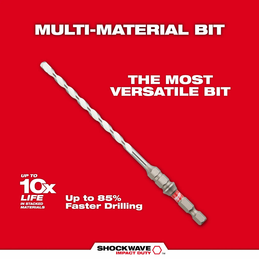 (1) Foret multi-matériaux en carbure SHOCKWAVE Impact Duty™ 5/32" x 4" x 6" pour vis à béton (48-20-8872)
