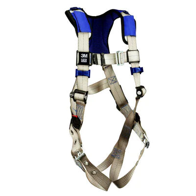 Les harnais de sécurité 3M™ DBI-SALA® ExoFit™ X100 sont fabriqués avec une sangle en polyester de 2 721,55 kg (6 000 lb), un rembourrage confortable hybride nylon/polyester et une visserie robuste en alliage d'acier. La plaque d'anneau en D dorsale antidérapante réduit le glissement de l'anneau en D dorsal et permet un emplacement pratique pour l'adaptateur permettant de connecter des lignes de vie autorétractables (SRL). Certaines configurations sont également disponibles avec des systèmes exclusifs de répartition du poids pour réduire la tension et la fatigue des épaules. Alors que vous continuez à relever vos objectifs et à atteindre de nouveaux sommets, le harnais de sécurité 3M™ DBI-SALA® ExoFit™ X100 a été repensé pour vous accompagner dans vos ascensions.