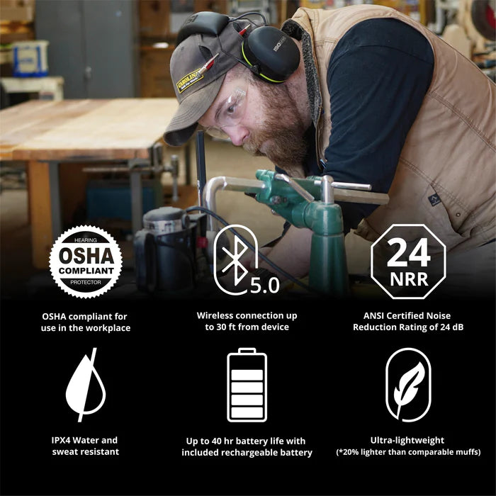 Cache-oreilles - Cache-oreilles Bluetooth ISOtunes AIR DEFENDER, noir/vert de sécurité, IT-46