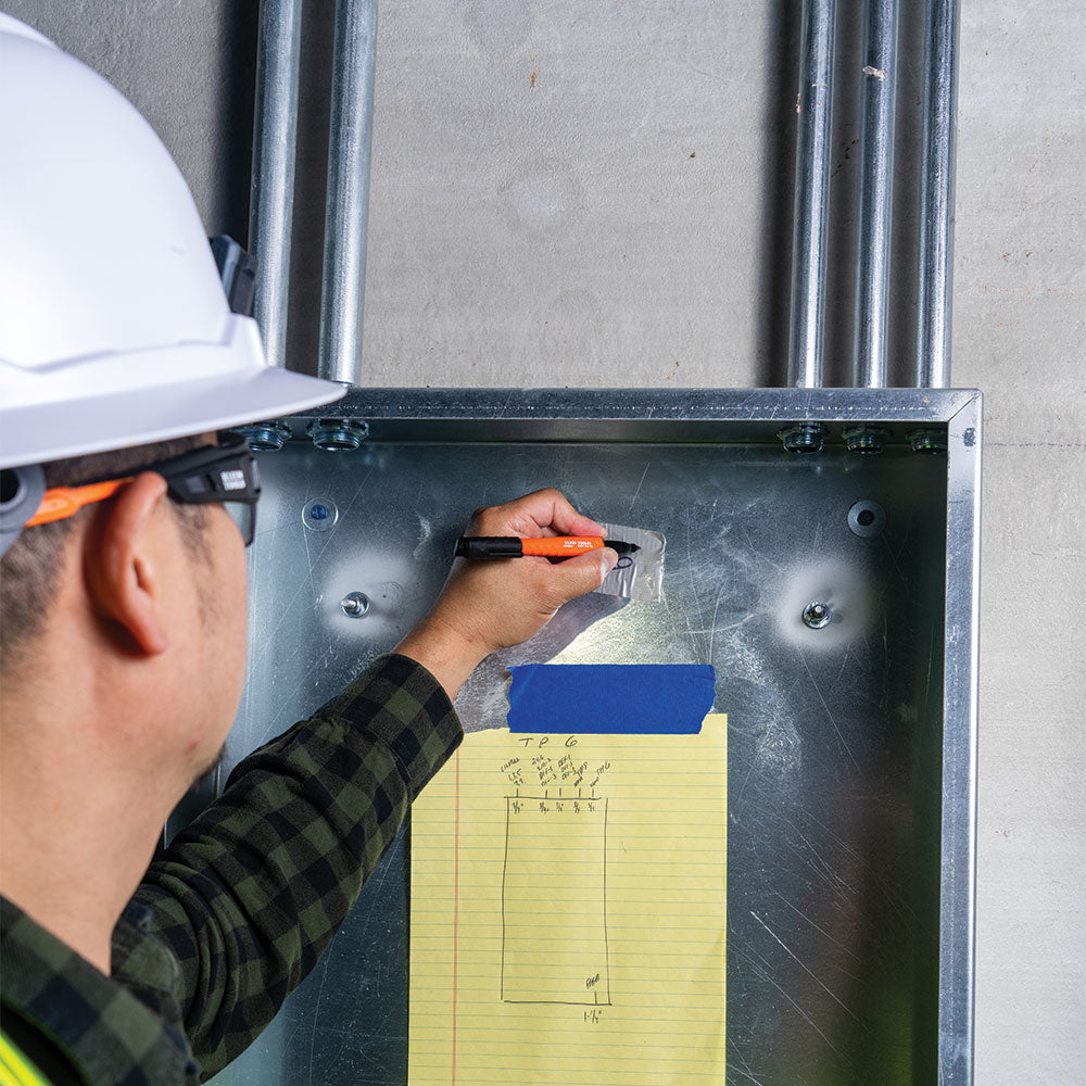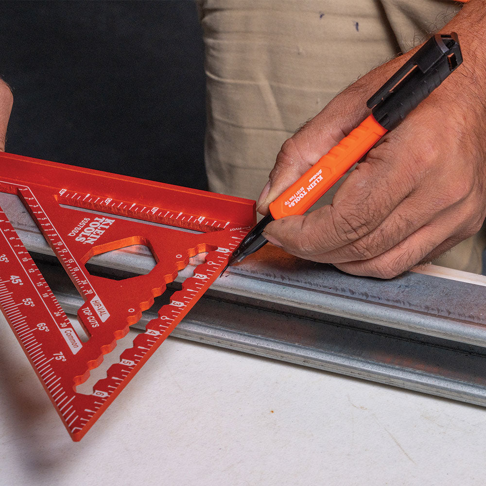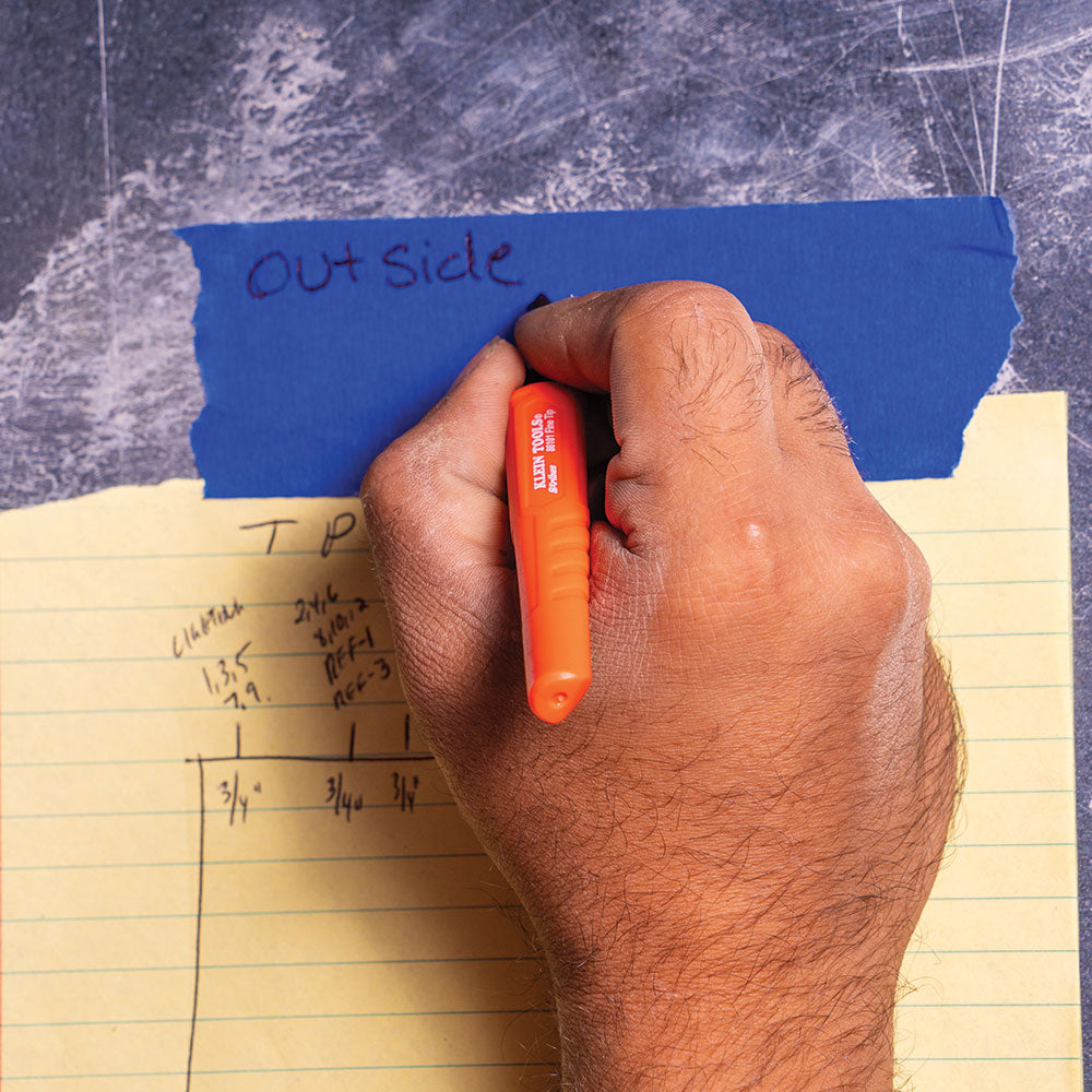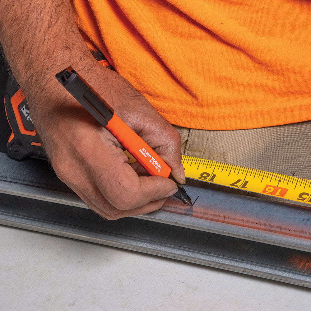 Les marqueurs permanents noirs à pointe fine Klein Tools Skribes™ sont conçus pour les conditions de chantier difficiles. Leurs pointes résistantes créent des lignes vives et durables pour un marquage et un étiquetage précis. L'encre de qualité professionnelle écrit sans effort sur les surfaces humides, sèches, huileuses et abrasives, et résiste à l'encrassement pour un marquage fluide. La durée de vie prolongée de 72 heures du marqueur sans capuchon l'empêche de sécher rapidement. Sa forme triangulaire anti-roulement et son clip intégré pour casque de sécurité le rendent facilement accessible sur le chantier.