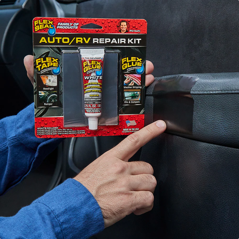 Le kit de réparation auto/VR est idéal pour les réparations rapides sur les voitures, camions et VR. Idéal pour les déchirures de sellerie, les pare-chocs, les panneaux latéraux, les phares, les joints d'étanchéité, les rétroviseurs, les boutons de porte, les moulures, les antennes, les bouches d'aération et bien plus encore !