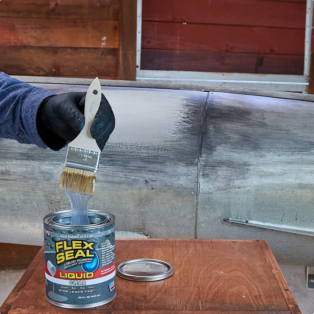 - Il est recommandé de porter des vêtements de protection avant de commencer tout projet. Assurez-vous que la surface est propre, sèche et exempte de graisse, d'huile et de saleté. Vous pouvez appliquer le liquide Flex Seal directement sur la surface au pinceau, au rouleau, par trempage ou par application.