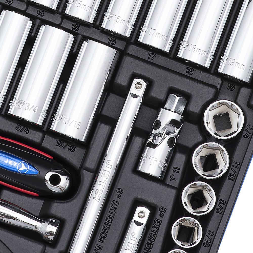 Jeu de clés à cliquet et de douilles – Jet 45 pièces, prise 3/8" SAE/jeu de clés à douille métriques – 6 pans, 600241 est en rupture de stock et sera envoyé dès qu'il sera disponible