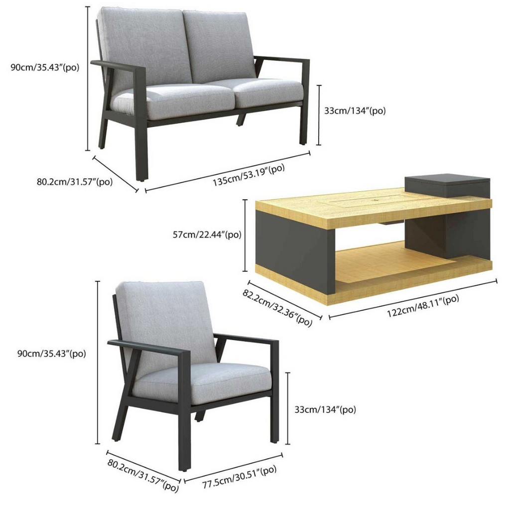 Transformez votre espace extérieur en un havre de paix luxueux et chaleureux avec l'ensemble foyer Patioflare Starlight 4 pièces en aluminium. Fabriqué en aluminium léger et résistant à la rouille, cet ensemble comprend une causeuse, deux chaises longues et une table foyer captivante. Installez-vous confortablement et détendez-vous en toute confiance grâce aux coussins en tissu Sunbrella résistant aux UV et profitez de la chaleur de la table foyer moderne et contemporaine de 45 000 BTU. Polyvalent, cet ensemble vous permet d'utiliser du propane ou de le convertir au gaz naturel grâce au kit de conversion inclus (bouteille de propane et tuyau de gaz naturel non inclus). Doté de superbes perles de feu pour une ambiance chaleureuse et d'une housse imperméable pour une protection optimale, cet ensemble redéfinit la détente en plein air, alliant durabilité, élégance et fonctionnalité dans un ensemble élégant.