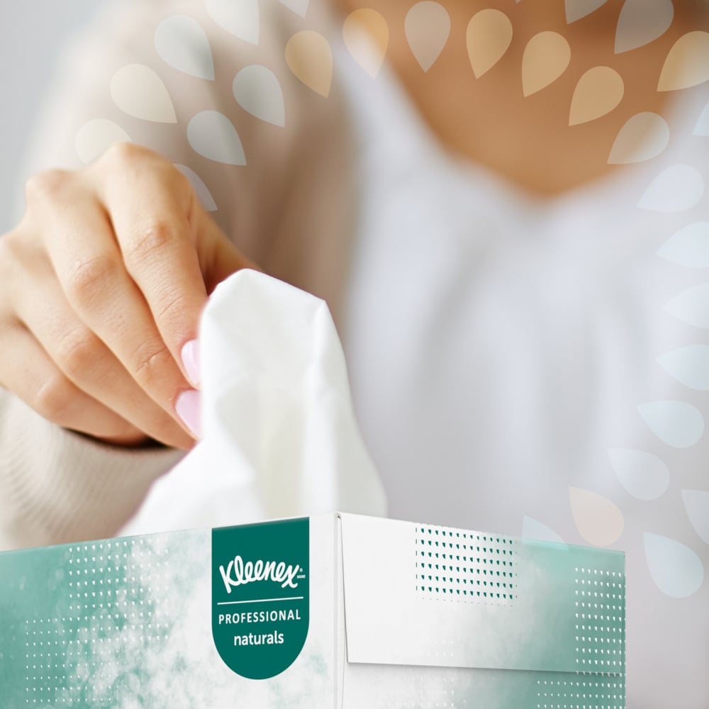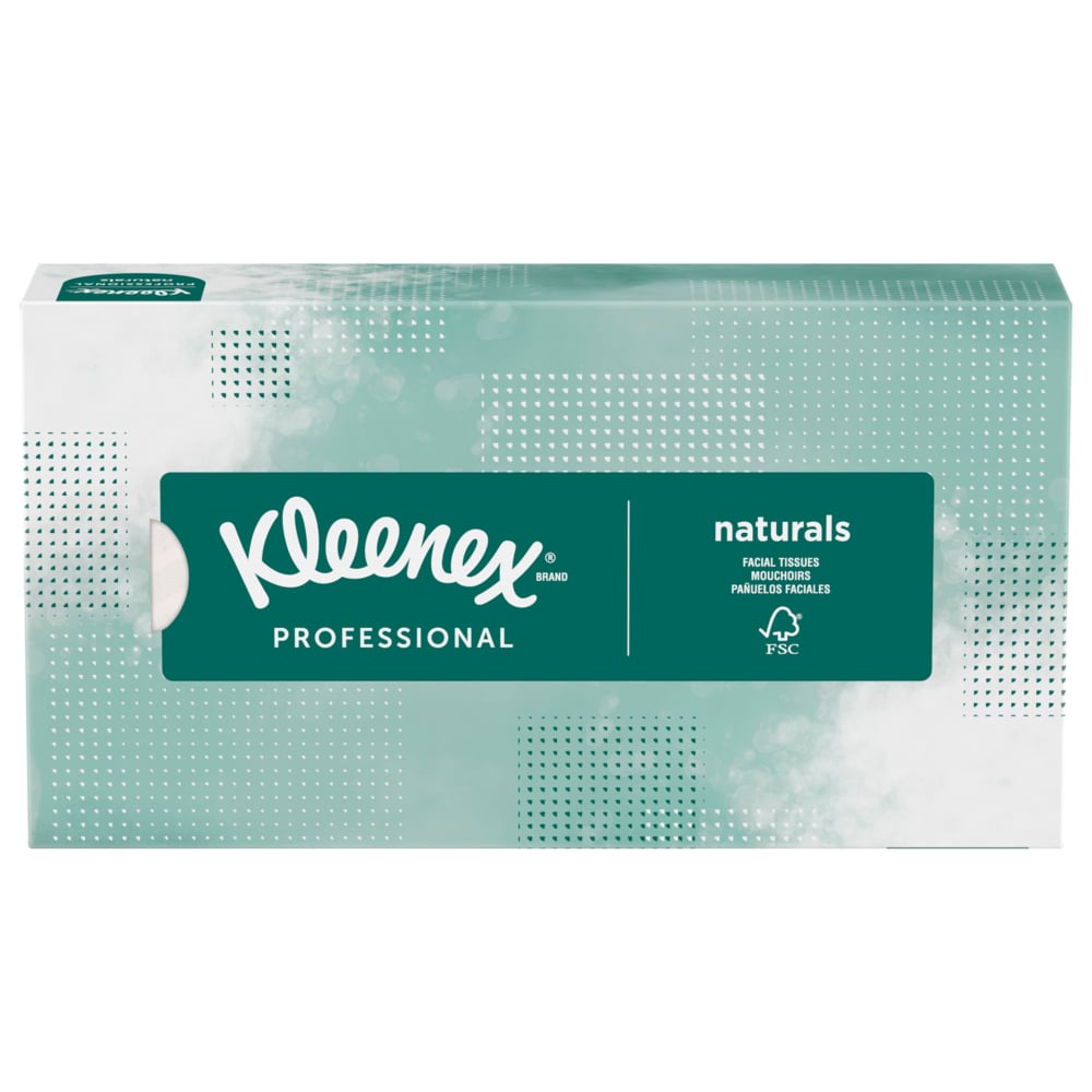 - 125 mouchoirs/boîte, 48 boîtes de mouchoirs Kleenex® Professional Naturals/caisse ; 6 000 mouchoirs/caisse ; 2 épaisseurs ; blanc ; boîtes de mouchoirs plates pour les entreprises