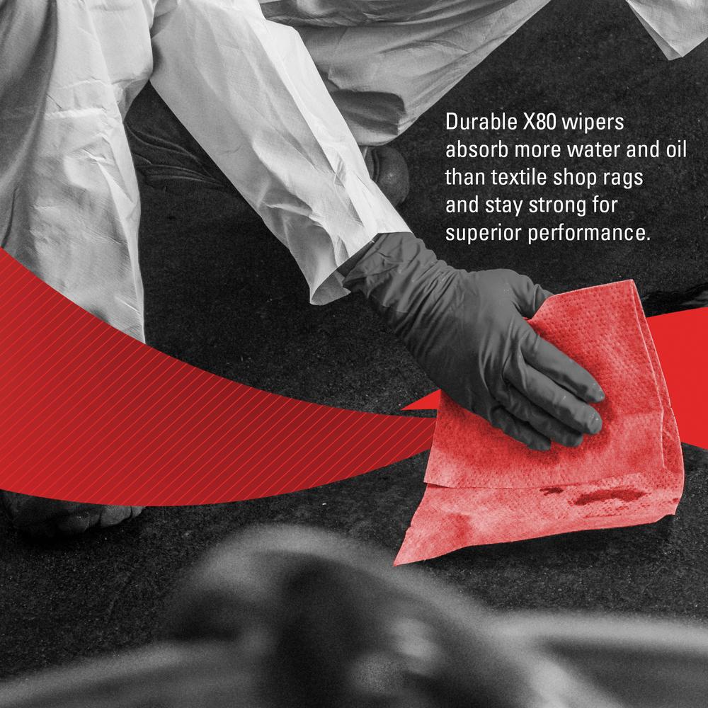 - 475 feuilles/rouleau ; 1 rouleau de chiffons WypAll® PowerClean™ X80 pour travaux lourds/caisse ; 475 feuilles/caisse ; rouge ; rouleau géant ; serviettes à usage prolongé