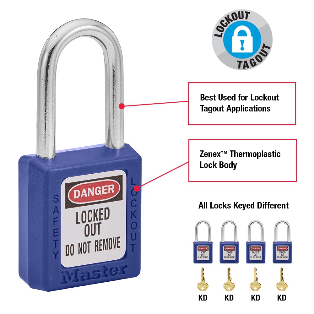 Cadenas - Cadenas de consignation de sécurité en thermoplastique Master Lock® Zenex™, clé différente, différentes couleurs, 410