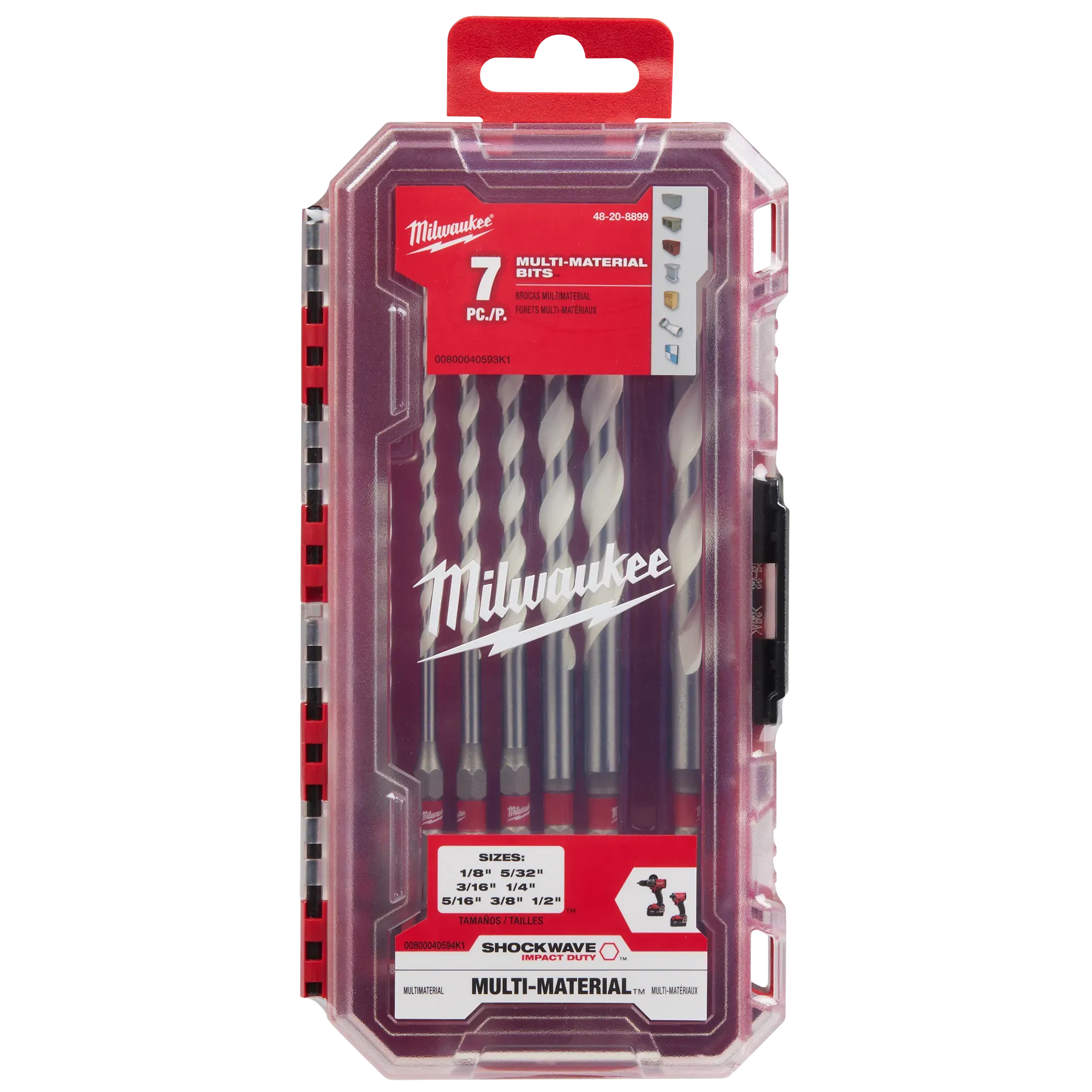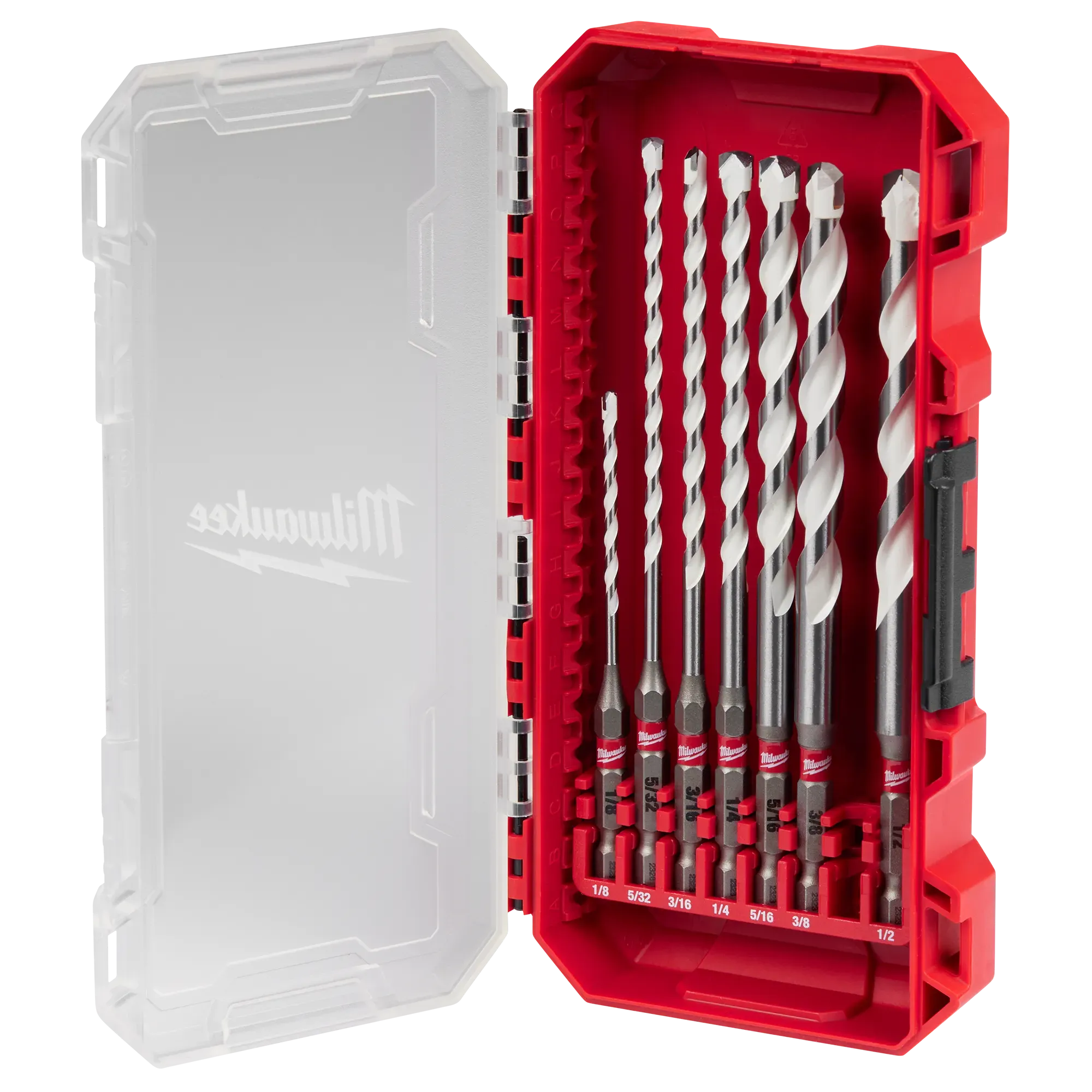 Les forets multi-matériaux en carbure SHOCKWAVE Impact Duty™ sont les plus polyvalents, conçus pour percer des matériaux tels que la brique, le parpaing, le béton, l'acier, l'aluminium, le carrelage, les panneaux de support, le bois, le PVC et les cloisons sèches. Leur pointe carbure multi-affûtage agressive offre une durée de vie jusqu'à 10 fois supérieure dans les matériaux empilés et des vitesses de perçage jusqu'à 85 % plus rapides dans le métal. Dotés d'une queue hexagonale de 1/4", ces forets polyvalents sont compatibles avec les perceuses à percussion, les perceuses-visseuses et les marteaux perforateurs. Ces forets multi-usages offrent la solution tout-en-un idéale pour une grande variété de matériaux, d'outils et d'applications. Notre kit comprend les forets multi-matériaux en carbure SHOCKWAVE Impact Duty™ de 5/32", 1/8", 3/16", 1/4", 5/16", 3/8" et 1/2". Emballé dans un étui rigide simple face de taille moyenne conçu pour être utilisé dans notre système de stockage PACKOUT™.