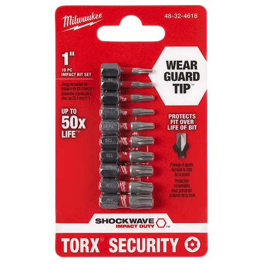 L'ensemble de 10 embouts à chocs hexagonaux de sécurité SHOCKWAVE™ 1" de Milwaukee est conçu pour avoir les embouts de tournevis les plus durables et les mieux ajustés du marché. La pointe Wear Guard™ offre une résistance à l'usure accrue qui protège l'ajustement pendant toute la durée de vie de l'embout. La Shockzone™ est optimisée pour chaque type d'embout et longueur d'embout de tournevis afin d'absorber le couple de pointe et d'éviter la rupture. Le Custom Alloy76™ a un acier personnalisé et un traitement thermique par type d'embout pour prolonger la durée de vie des embouts de tournevis, offrant une durée de vie jusqu'à 50 fois supérieure à celle des embouts de tournevis à percussion concurrents. Les embouts de tournevis SHOCKWAVE™ sont conçus pour offrir une durabilité extrême pour les applications les plus exigeantes.