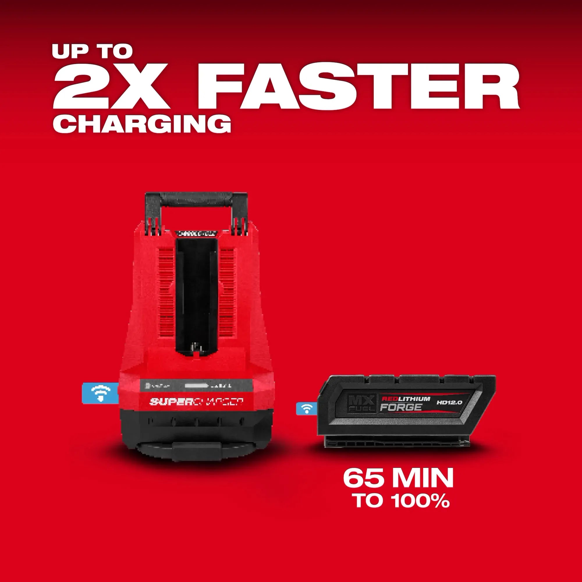 - Temps de charge de 65 minutes avec le MX FUEL™ REDLITHIUM™ FORGE™ HD12.0 et le Super Charger