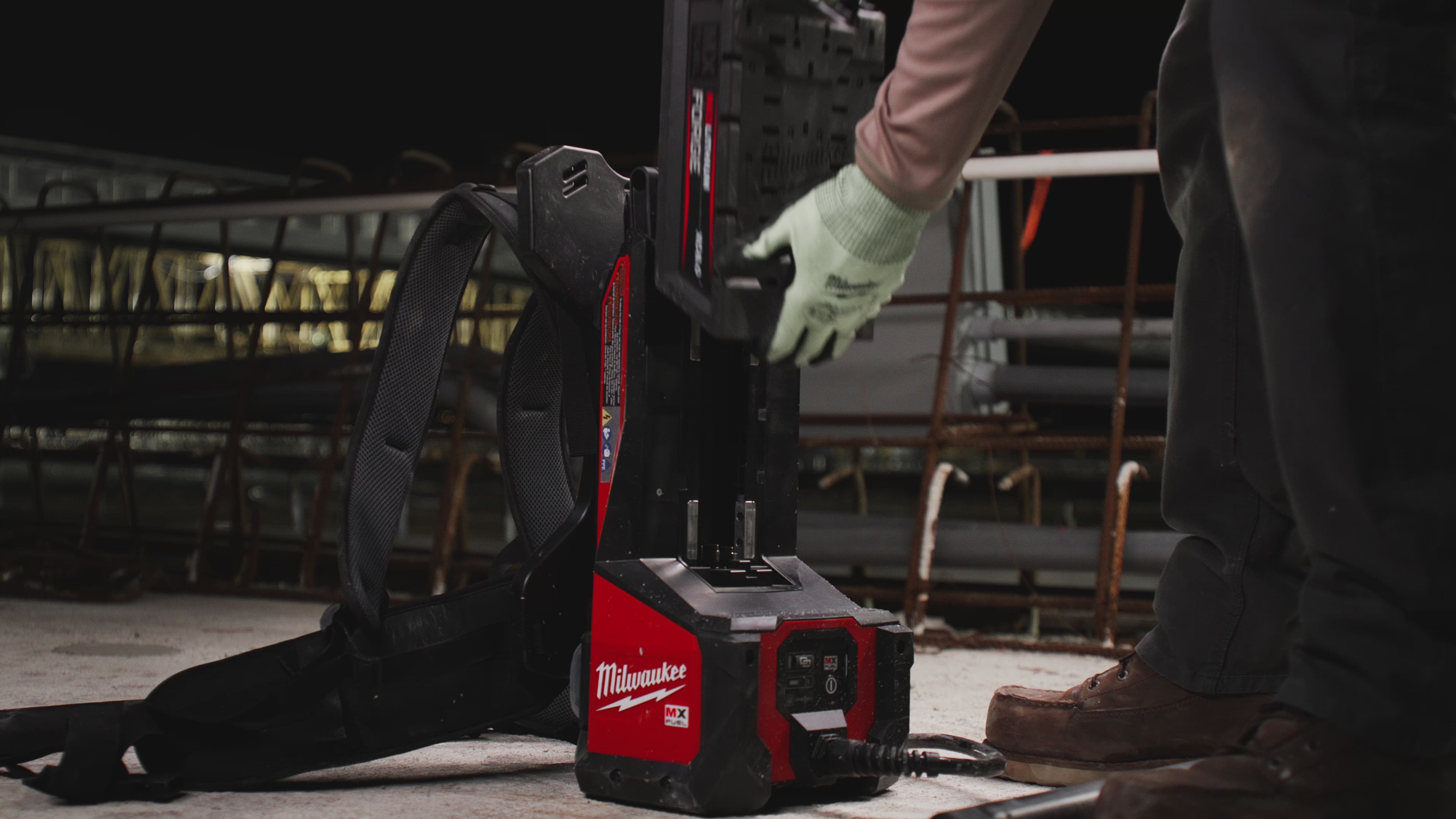 - Comprend : (1) vibrateur à béton à cycle élevé MX FUEL™, (2) batteries MX FUEL™ REDLITHIUM™ 8.0, (1) compresseur MX FUEL™ et télécommande