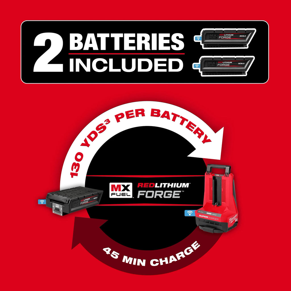 - Temps de charge de 45 minutes avec le MX FUEL™ REDLITHIUM™ FORGE™ XC8.0 sur le super chargeur MX FUEL™