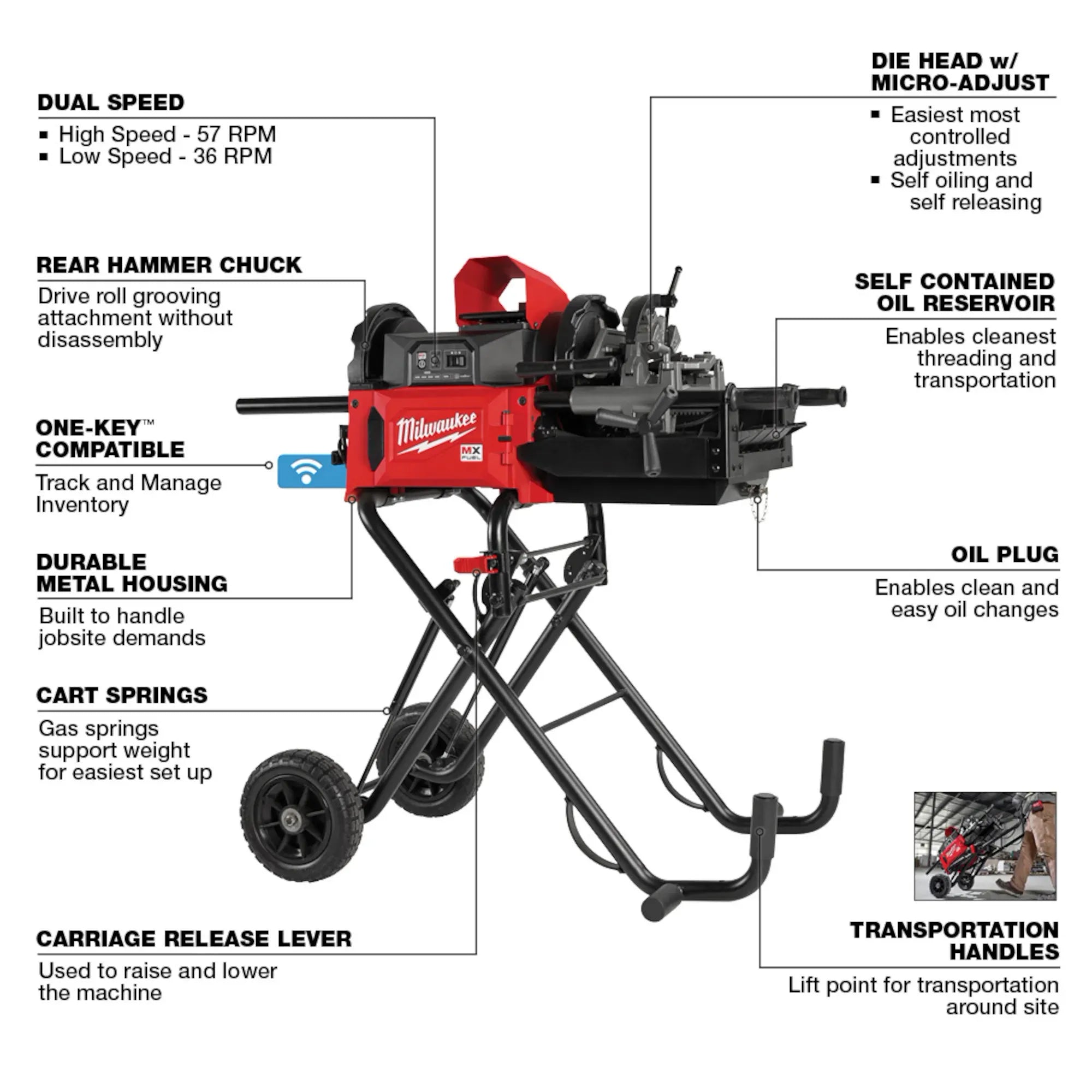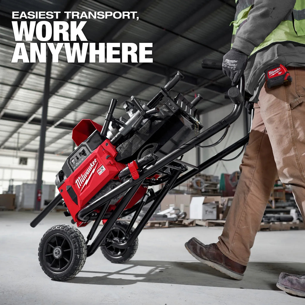 La machine à fileter les tuyaux MX FUEL™ est la première machine à fileter sans fil du secteur, conçue pour faciliter votre flux de travail et augmenter votre productivité. Alimentée par des batteries MX FUEL™ REDLITHIUM™, la machine élimine le besoin de travailler à proximité d'une prise, vous permettant de travailler n'importe où - installez-la là où cela vous convient le mieux, et même dans des endroits qui ne sont pas possibles avec d'autres machines à fileter. Associée à un chariot à ressort pour un transport et une installation plus faciles, ainsi qu'à un réservoir d'huile autonome pour empêcher l'huile de toucher le sol. La machine à fileter les tuyaux MX FUEL™ vous permet de vous déplacer facilement avec votre travail, éliminant ainsi le temps perdu à faire des allers-retours sur le chantier. Pour les travaux nécessitant du filetage et du rainurage, le deuxième mandrin à marteau de la machine permet la connexion d'accessoires de rainurage par roulage sans nécessiter de démontage ni d'adaptateurs supplémentaires, ce qui permet de gagner du temps de configuration à chaque changement. La tête de filetage de tuyau NPT de Milwaukee® avec micro-ajustement se libère non seulement automatiquement pour chaque filetage, mais le bouton de micro-ajustement permet les réglages de matrice les plus faciles et les plus contrôlés pour des filetages de qualité constante au fil du temps. La batterie MX FUEL™ REDLITIUM™ XC406 fournit jusqu'à (140) coupes, alésages et filetages de ¾ po par charge, offrant l'autonomie nécessaire pour travailler toute la journée et la puissance nécessaire pour fileter des tuyaux en fer noir jusqu'à 2 po, de l'acier inoxydable, des conduits métalliques rigides (RMC) et plus encore. Une fois le travail terminé, la machine peut être stockée verticalement sans renverser, réduisant ainsi l'empreinte de stockage. L'enfileuse est compatible avec la technologie ONE-KEY™ qui se connecte sans fil à un smartphone pour suivre l'emplacement de l'outil, le gérer dans l'inventaire et verrouiller l'outil pour plus de sécurité et de protection de votre investissement.