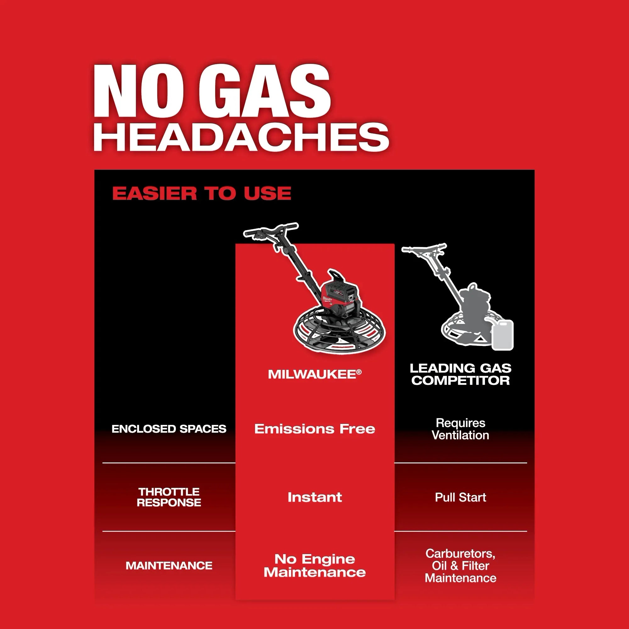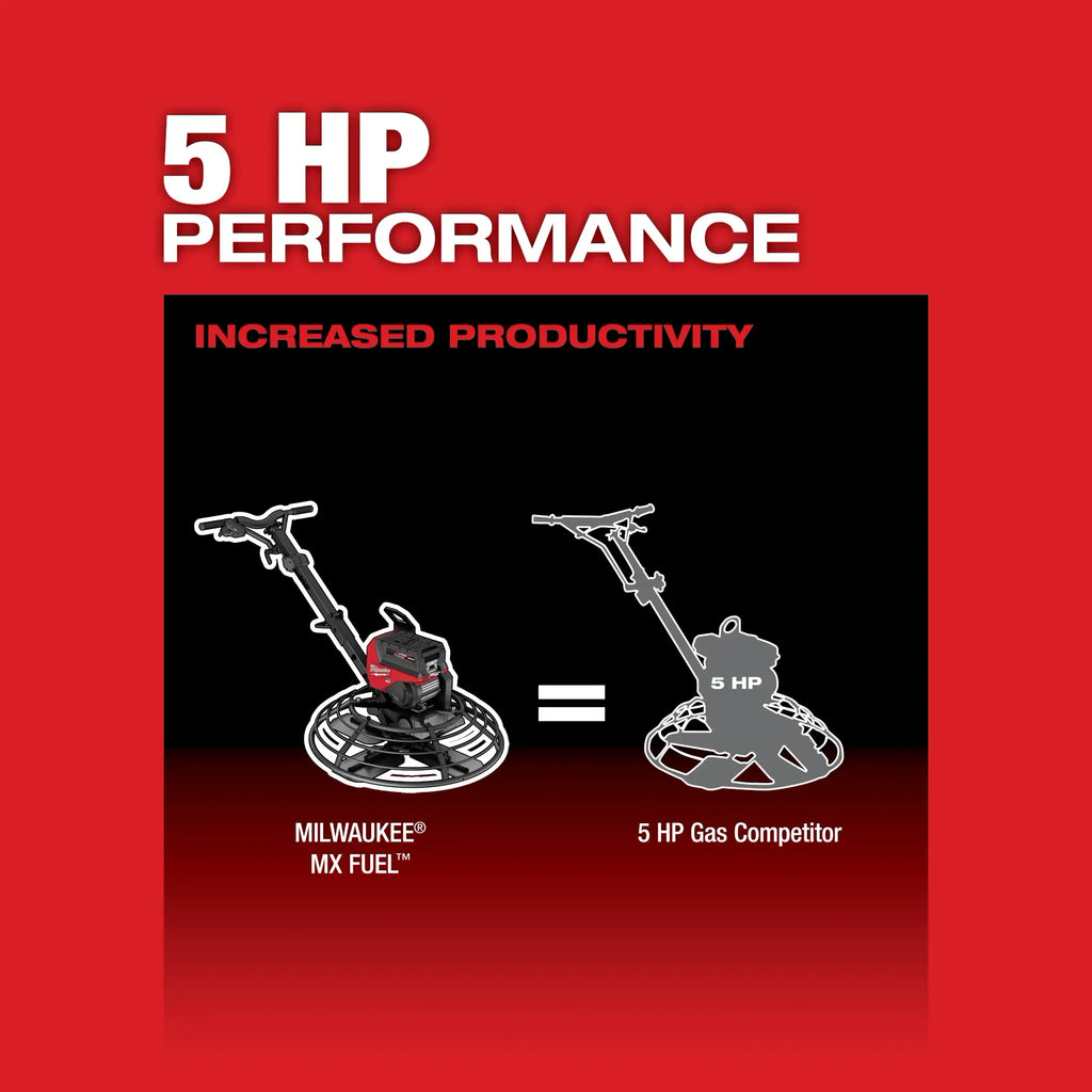 - Comprend : (1) truelle autoportée MX FUEL™ 36 po, (3) blocs-batteries MX FUEL™ REDLITHIUM™ FORGE™ HD12.0 et (1) compresseur MX FUEL™