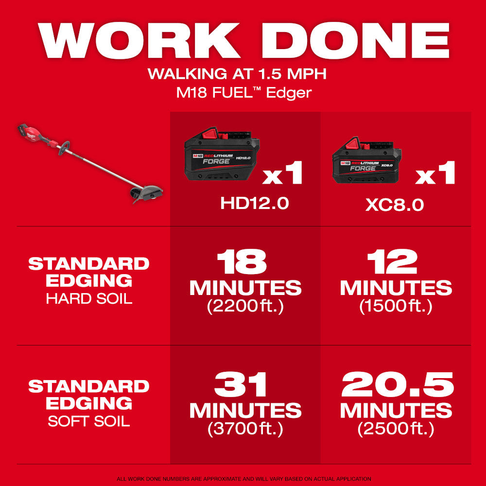 Le coupe-bordures Milwaukee M18 FUEL™ est conçu pour répondre aux besoins de performance, de durabilité et d'ergonomie des professionnels de l'entretien paysager. Son moteur sans balais POWERSTATE™ offre une puissance supérieure à celle d'un moteur thermique de 31 cm³ pour les applications exigeantes comme la création de bordures et maintient une vitesse de lame plus élevée pour des coupes nettes plus rapidement. Ce coupe-bordures à arbre fixe est plus léger et produit moins de vibrations, ce qui réduit la fatigue. Le coupe-bordures M18 FUEL™ atteint son plein régime en moins d'une seconde, augmentant ainsi la productivité. Il est équipé d'une ligne de visée sur le carter, d'une plaque de protection en acier et d'un indicateur d'usure de la lame pour un meilleur contrôle et une productivité accrue. Notre technologie REDLINK PLUS™ Intelligence assure une communication complète entre l'outil et la batterie, vous offrant des niveaux de performance, de protection et de productivité inégalés. Ce coupe-bordures est optimisé pour une utilisation avec notre batterie M18 FUEL™ REDLITHIUM™ FORGE™ HD12.0 pour une puissance et une autonomie accrues. Le coupe-bordures M18 FUEL™ est entièrement compatible avec plus de 275 solutions du système M18™.