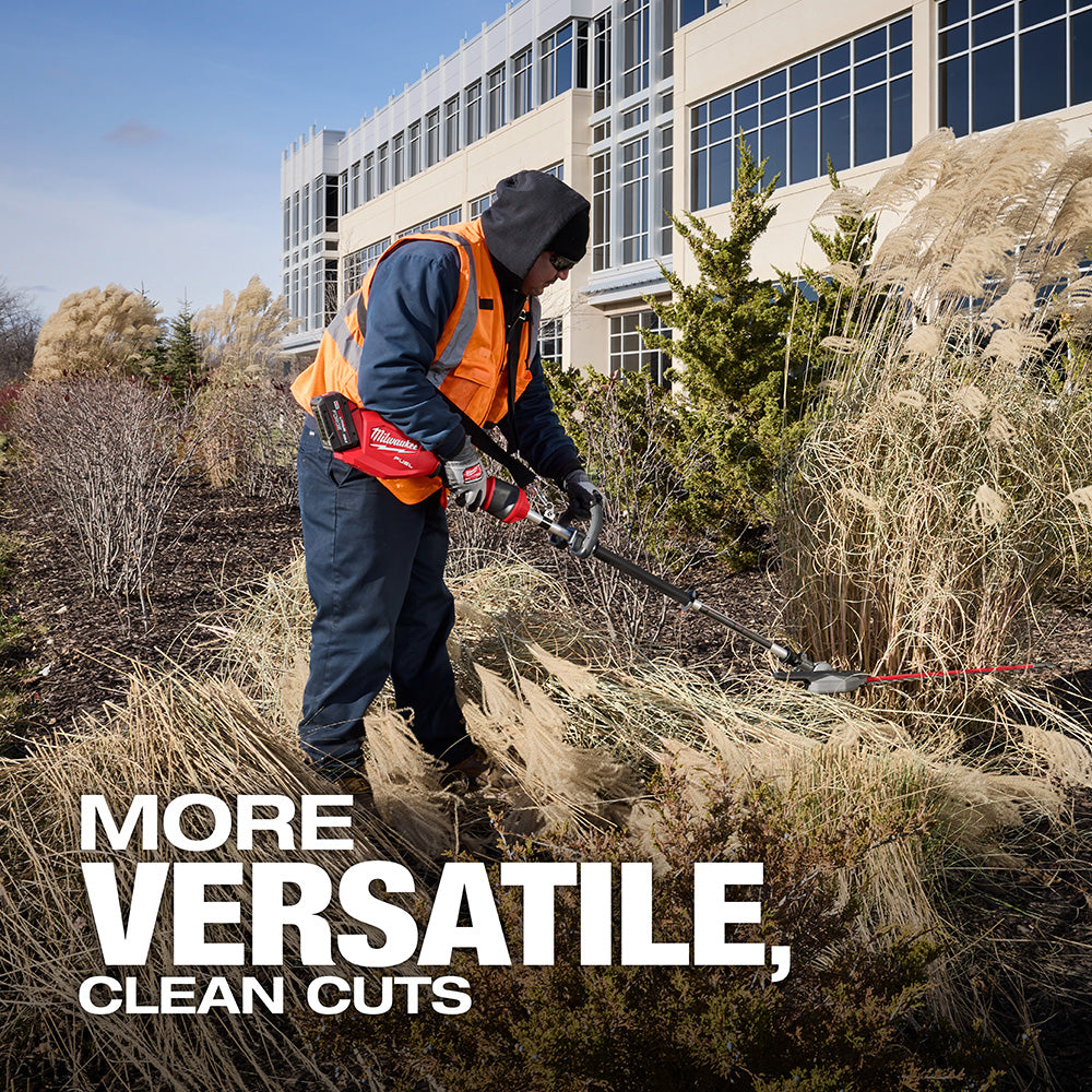 Le taille-haie à perche articulée M18 FUEL™ de Milwaukee a la puissance de couper des branches de 1 po, coupe plus rapidement et offre plus de polyvalence pour des coupes nettes. Conçu pour répondre aux besoins des professionnels de l'entretien paysager, ce taille-haie utilise un moteur sans balai POWERSTATE™ et des lames double face de 24 po avec un espace de lame de 1 po, pour une coupe plus rapide et plus agressive. La tête de coupe permet une articulation de la lame à 270 degrés, offrant aux utilisateurs 12 positions de fonctionnement et 1 position de rangement. Le taille-haie comprend un protège-pointe pour éviter d'endommager la lame et la zone de travail environnante, ainsi qu'une poignée à anse, une poignée rembourrée et une poignée rotative à 5 positions pour un placement optimal de la main et un confort et un contrôle accrus. La longueur de ce taille-haie avec la batterie REDLITHIUM™ FORGE™ XC8.0 est de 87 po. REDLINK PLUS™ Intelligence offre une communication système totale entre l'outil et la batterie pour des niveaux de performance, de protection et de productivité inégalés. Le taille-haie à perche articulée M18 FUEL™ est entièrement compatible avec plus de 275 solutions du système M18™.