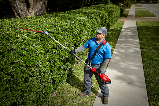 Le taille-haie articulé Milwaukee® M18™ FUEL™ QUIK-LOK™ est alimenté par la tête motrice M18™ FUEL™ avec QUIK-LOK™ et est compatible avec le système de fixation QUIK-LOK™. Son mécanisme d'articulation permet une rotation de 270° du jeu de lames, offrant 13 positions de fonctionnement et 1 position de rangement. Doté d'une lame de 50 cm (20 po) avec une capacité de coupe de 2,5 cm (1 po), il permet de couper plus de matière en un seul passage. La tête du taille-haie est dotée d'un protège-pointe pour protéger la lame et la zone de travail environnante, ainsi que d'une poignée rembourrée pour un maintien optimal de la main et un confort accru. Les accessoires QUIK-LOK™ sont dotés d'arbres d'entraînement protégés pour une durabilité accrue contre les chutes et les éléments de rangement. Le taille-haie est également doté d'un engrenage optimisé pour gérer le régime moteur de la tête motrice sans fil M18™ FUEL™, spécialement conçu pour la taille des haies.