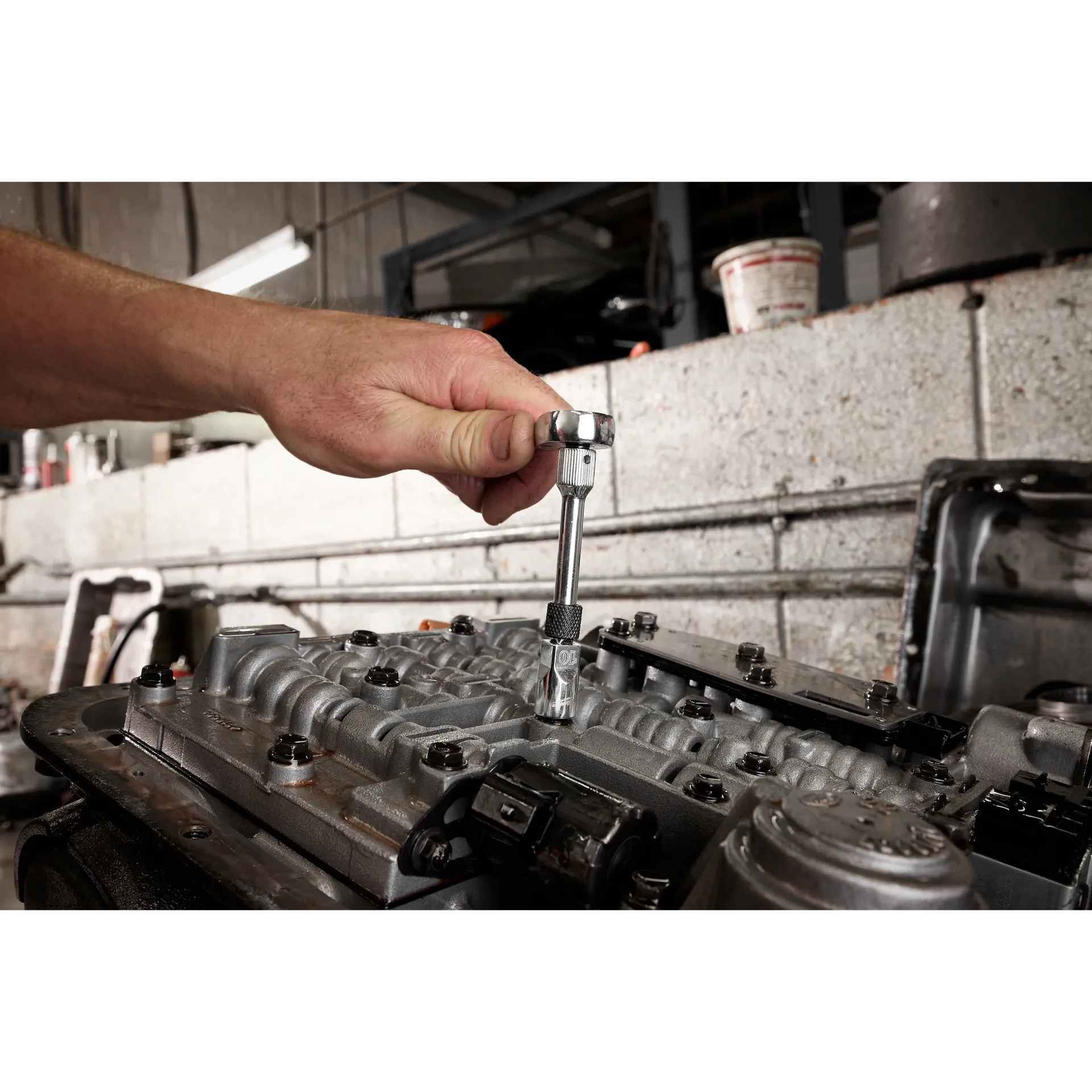 Le jeu de 3 rallonges verrouillables à entraînement 1/2" offre un contrôle optimal et une sécurité optimale dans les applications exigeantes. Ces rallonges présentent la plus grande surface moletée, tant sur l'arbre que sur l'extrémité femelle, permettant un contrôle précis lors du serrage manuel des fixations ou de la manipulation de matériaux huileux. Outre le maintien de la douille grâce à une bague de verrouillage moletée durable, ces rallonges sont dotées d'un trou de verrouillage pour un meilleur engagement avec la tête du cliquet et une meilleure rétention. Le jeu comprend un support de rangement compact et durable conçu pour optimiser l'espace du tiroir pour une utilisation longue durée. Le chromage des rallonges les protège contre la corrosion et la rouille. Tous les outils manuels Milwaukee® Mechanics sont garantis à vie.