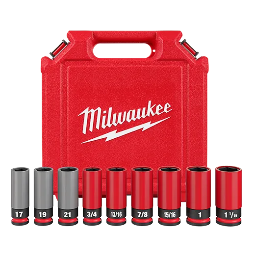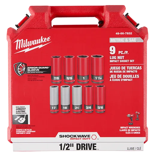 Jeu de douilles - Milwaukee SHOCKWAVE Impact Duty™ Jeu de douilles pour écrous de roue à entraînement 1/2 SAE et métrique 9 pièces, 49-66-7832