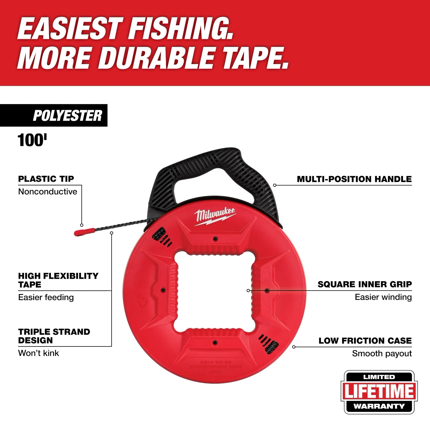 Les rubans de tirage en polyester sont dotés d'une grande flexibilité pour une pêche plus facile. Leur conception à trois brins ne se plie pas après un usage répété et offre une plus grande durabilité. Leur pointe non conductrice permet de manipuler en toute sécurité les fils et câbles électriques. Leur boîtier à faible friction assure un déroulement fluide et un rembobinage facile. Leur poignée multipositions vous permet de les utiliser confortablement sur tous les chantiers.