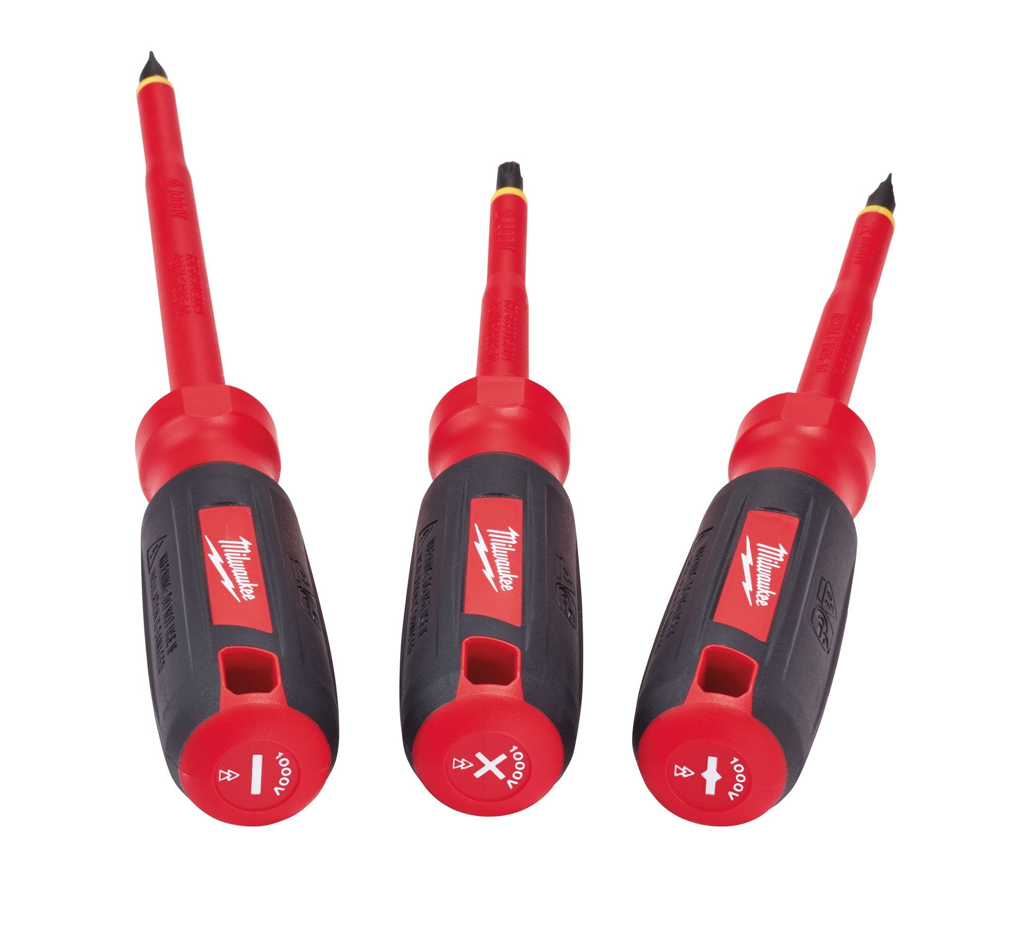 Les tournevis isolés Milwaukee® 1000 V sont les seuls tournevis certifiés UL® testés selon les normes CEI 60900:2012, ASTM F1505-10 et NFPA 70E et conformes aux exigences de l'OSHA relatives aux outils isolés. Offrant un niveau de sécurité sans compromis, les tournevis isolés Milwaukee sont ignifuges et résistants aux chocs. Ils sont dotés d'une isolation double couche pour une protection maximale et d'un indicateur d'usure visuel pour avertir l'utilisateur de leur remplacement.