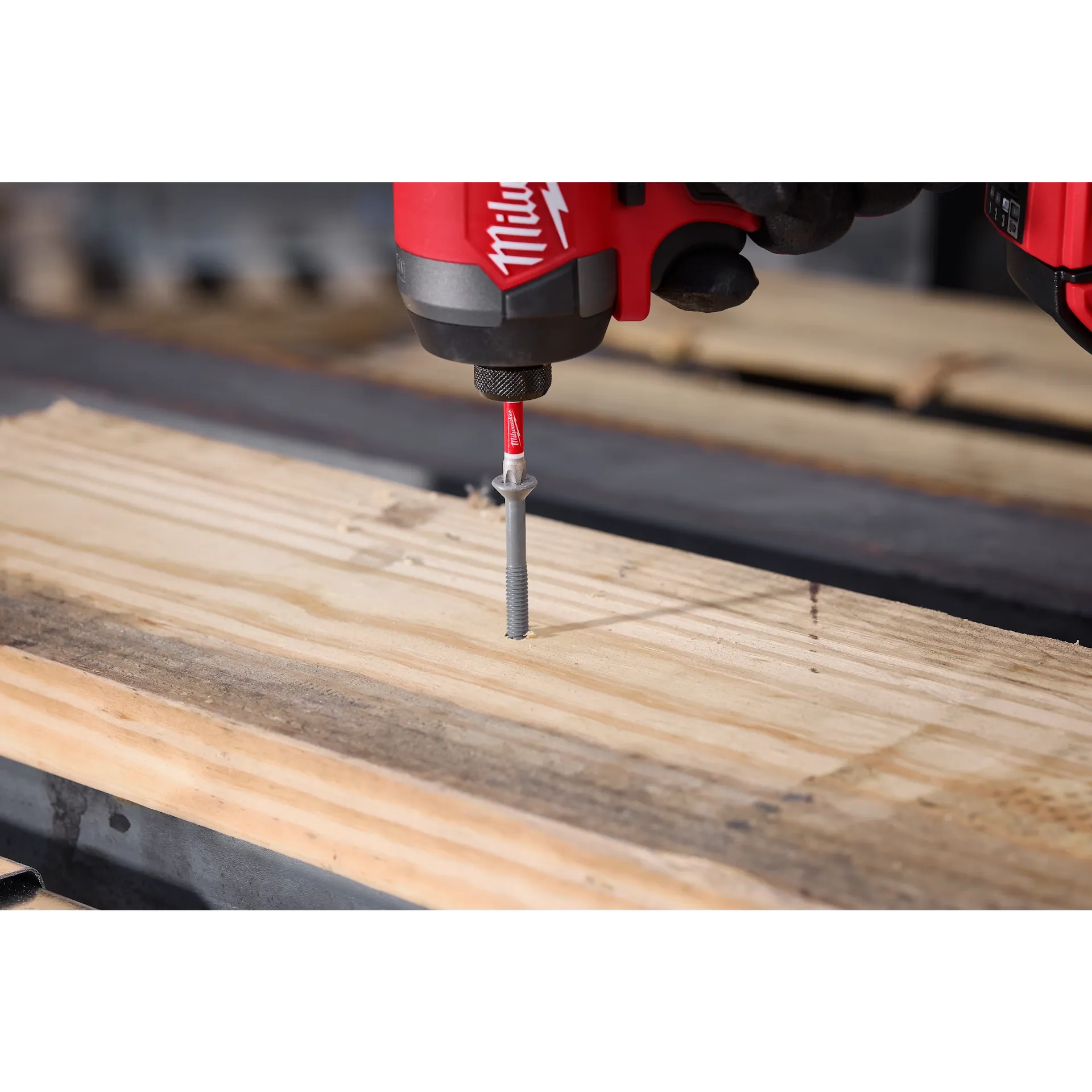 Les embouts de vissage double SHOCKWAVE™ offrent un ajustement parfait pour une expérience de vissage optimale. Les tiges SHOCKZONE™ optimisées sont personnalisées pour chaque type d'embout afin d'absorber le couple maximal et d'éviter la casse. L'embout Wear Guard™ longue durée offre une résistance accrue à l'usure, protégeant ainsi l'ajustement tout au long de la durée de vie de l'embout. La géométrie de l'embout sur mesure réduit l'usure des vis sur le chantier.
