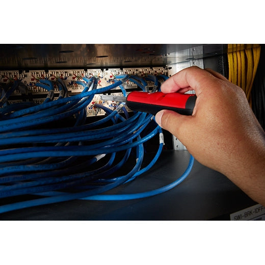 Bénéficiez d'un accès et d'une visibilité optimaux grâce à l'outil de perforation. Une lame 110 à portée étendue, une nouveauté mondiale, facilite la navigation dans les panneaux de brassage encombrés, tandis qu'un voyant LED intégré vous permet de voir à l'intérieur du panneau lors du raccordement des câbles.
