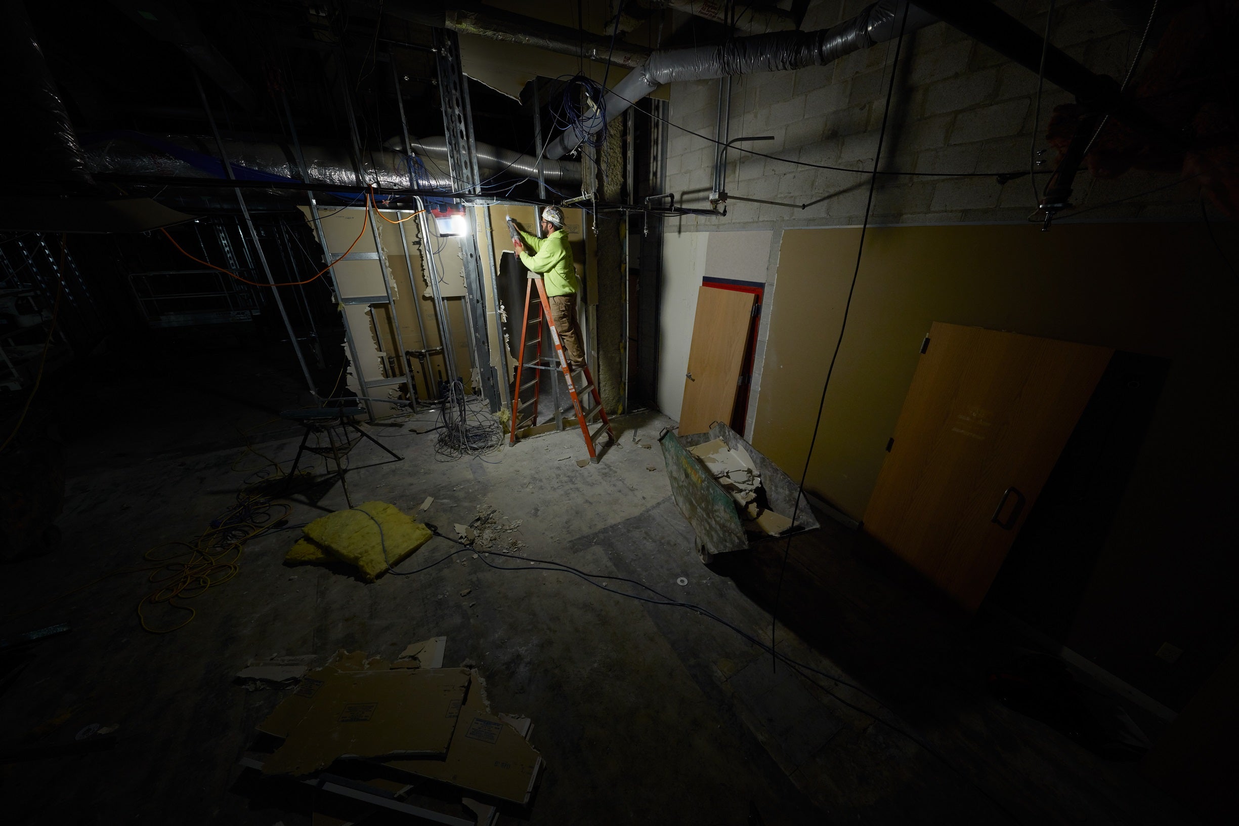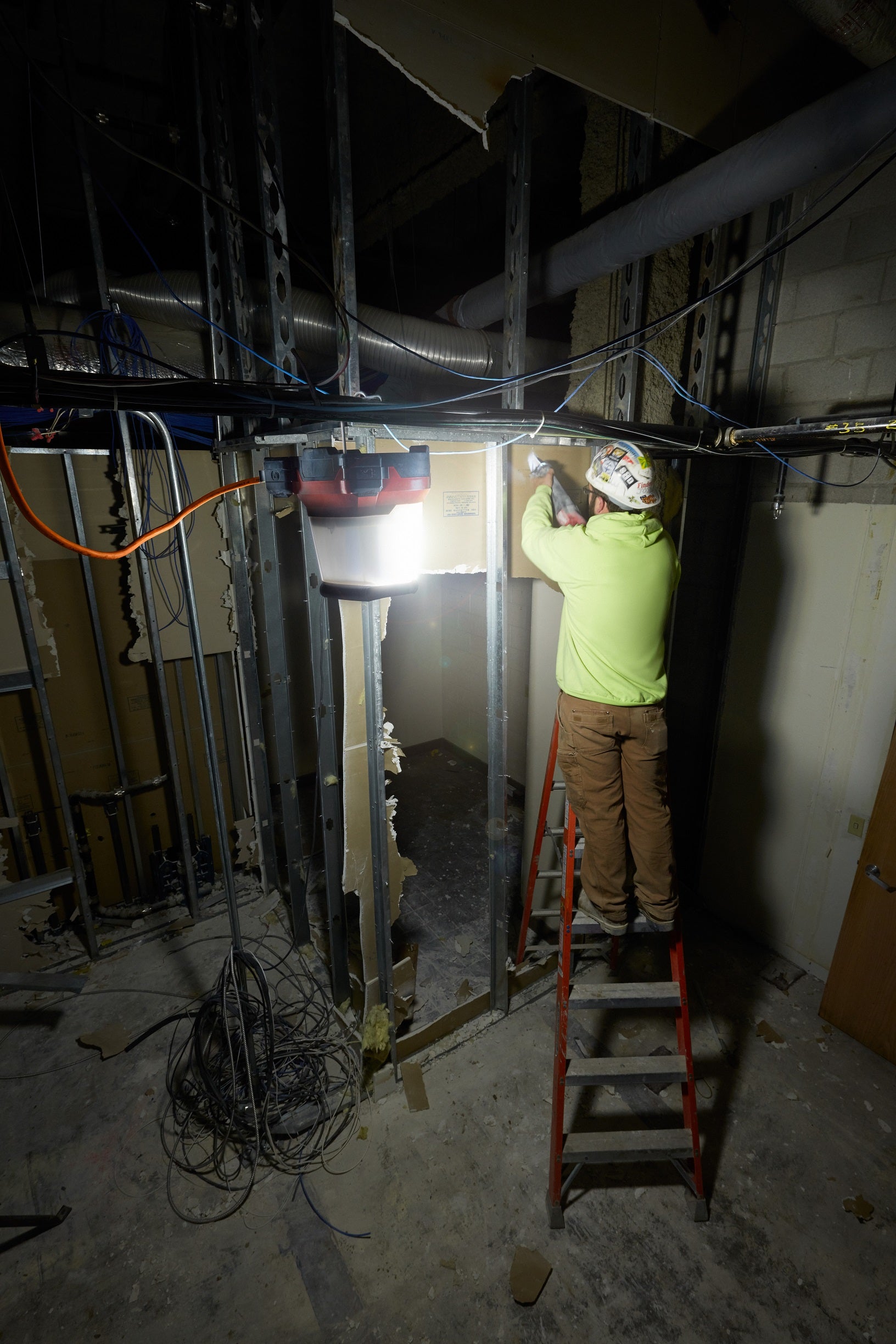 Le projecteur de chantier compact M18™ RADIUS™ est le plus polyvalent sur le chantier. Premier projecteur de chantier sans fil à haut rendement au monde, il offre un éclairage optimal pour les tâches, les zones et les applications en hauteur. Ce projecteur de chantier LED compact offre une puissance lumineuse TRUEVIEW™ haute définition de 4 400 lumens. Notre projecteur portable fournit suffisamment de lumière pour éclairer de grandes zones de travail et peut être réduit jusqu'à 1 000 lumens pour les travaux en espaces confinés. Sa lentille en polycarbonate résistant aux chocs et son indice de protection IP54 lui permettent de résister aux conditions de chantier les plus difficiles. Nos LED de haute qualité sont inaltérables et bénéficient d'une garantie à vie limitée. Les projecteurs de chantier MILWAUKEE® RADIUS™ offrent une couverture maximale pour les tâches, les zones et les applications en hauteur grâce à leur capacité à éclairer l'intégralité d'un espace de travail à 360 degrés.