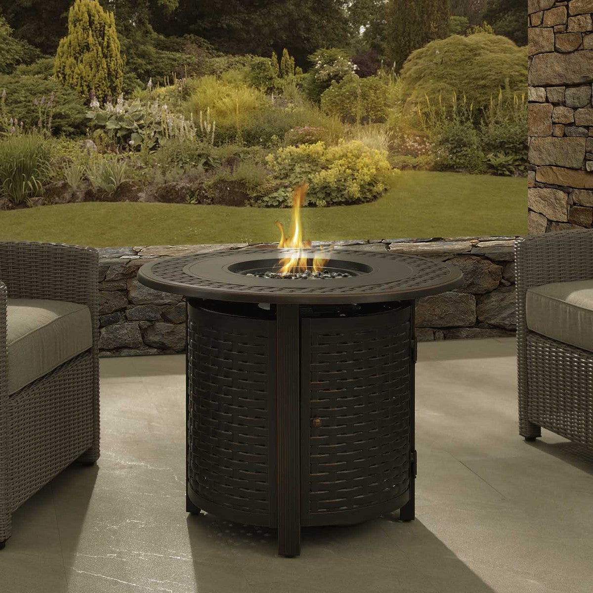 Rester au chaud pendant les nuits fraîches est beaucoup plus facile et plus élégant avec cette table de foyer ronde de 34 po. Commencez à générer de la chaleur quelques secondes après avoir appuyé sur l'interrupteur d'allumage électronique sous la table.