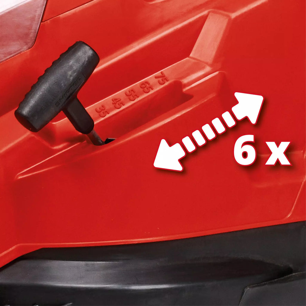 Le kit tondeuse à gazon poussée sans fil Einhell RASARRO 36/42 (2 x 4,0 Ah) offre tous les avantages de la série Power X-Change grâce à son système de batterie lithium-ion de haute qualité. Il est livré avec deux batteries rechargeables Power X-Change de 4,0 Ah et un chargeur rapide Power X-Twincharger 3A, compatible avec toutes les batteries PXC. Les deux batteries 18 V fournies sont compatibles avec tous les outils Power X-Change. Un indicateur de charge pratique à trois LED permet de vérifier le niveau de charge en un coup d'œil. La RASARRO est alimentée par un moteur sans balais. La tondeuse dispose d'un réglage de la hauteur de coupe sur 6 niveaux (2,8 cm - 7,6 cm) et d'un bac de ramassage de 50 litres avec indicateur de niveau. Son long manche est en aluminium à la fois robuste et léger. Il est également rabattable, permettant ainsi de ranger facilement le RASARRO dans un minimum d'espace. Sa poignée ergonomique garantit un travail sans fatigue, tandis qu'une poignée intégrée facilite le transport. Le peigne à herbe intégré de ce modèle à roues hautes, respectueux des pelouses, permet une tonte en bordure. Un obturateur mulching est inclus.