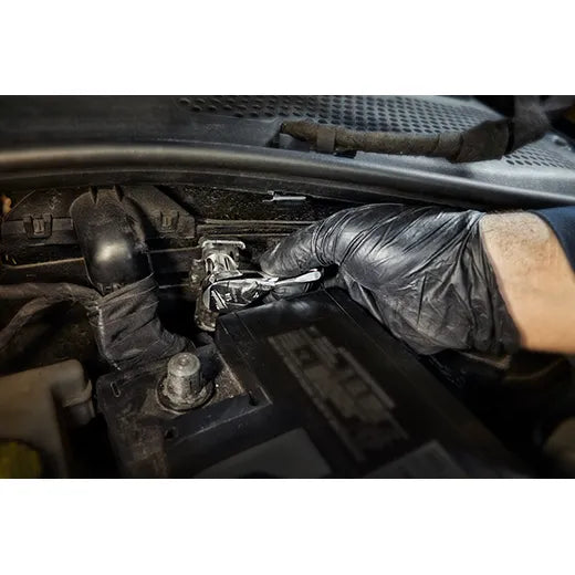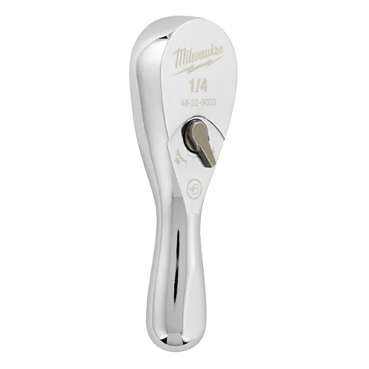 Le cliquet court à entraînement 1/4" offre un arc de rotation de 4°, ce qui permet d'accéder aux travaux dans des espaces plus restreints. Une tête à profil mince et un levier directionnel affleurant combinés à la longueur du manche court vous offrent une accessibilité accrue. La finition entièrement chromée permet au cliquet court MILWAUKEE® de se nettoyer facilement. Nous soutenons ce cliquet avec notre garantie à vie sur les outils manuels pour mécaniciens.