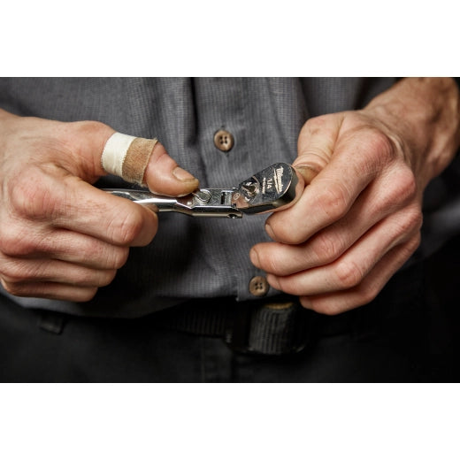 Ce cliquet à tête flexible MILWAUKEE® à entraînement 1/4" et angle d'inclinaison de 4⁰ offre un meilleur accès et s'adapte mieux aux espaces de travail aux angles variés. La tête du cliquet peut être verrouillée dans 7 positions uniques ou déverrouillée pour une liberté de mouvement optimale. Sa tête fine et ses leviers directionnels et de verrouillage affleurants offrent une meilleure accessibilité dans les espaces restreints. Sa finition entièrement chromée facilite le nettoyage du cliquet à tête flexible MILWAUKEE®. Ce cliquet est couvert par la garantie à vie Mechanics Hand Tools.