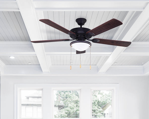 Le ventilateur de plafond Kincade de 52 pouces fournit un éclairage suffisant pour vos besoins quotidiens tout en ajoutant une couche de style moderne au décor de votre maison. Le style transitionnel du ventilateur de plafond Kincade est évident dans sa symétrie épurée et ses éléments de conception solides. Jumelé au verre d'albâtre et à 5 pales réversibles en noyer et chêne moyen, le ventilateur de plafond Kincade s'adaptera à de nombreux décors d'éclairage différents.