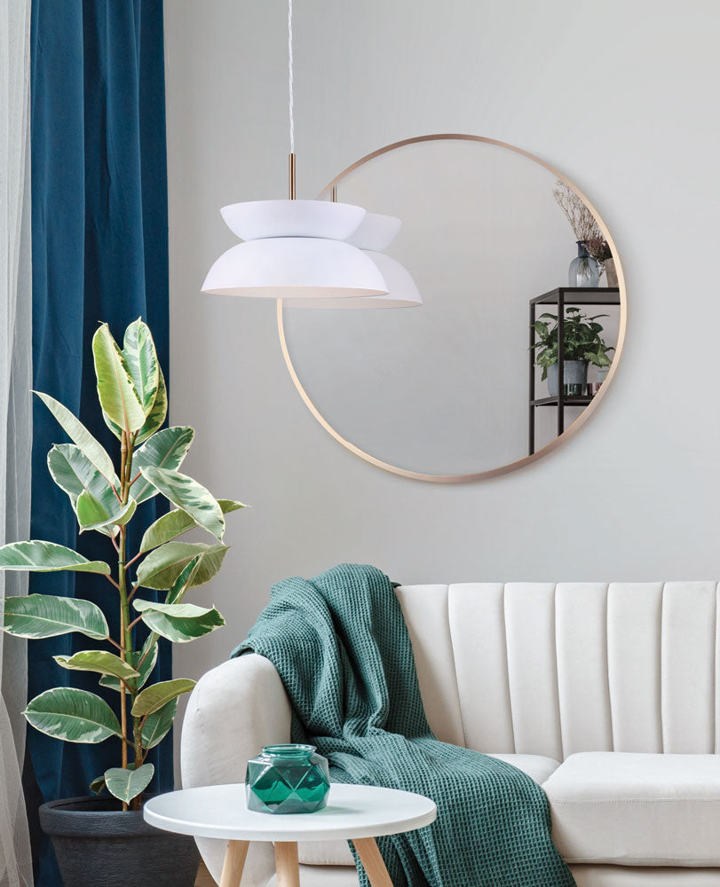Le look d'inspiration vintage de MILA apporte une touche moderne à un design du milieu du siècle. En associant deux finitions riches telles que le blanc mat et l'or, les détails de la suspension MILA sont mis en valeur pour un look plus sophistiqué mais ludique.