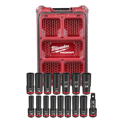 Le jeu de douilles SHOCKWAVE Impact Duty™ présente les marquages les plus audacieux et les plus durables et une durabilité extrême aux chocs dans les applications à couple élevé. Le marquage de taille estampé et rempli d'encre vous permet de sélectionner la bonne douille à chaque fois tout au long de la durée de vie de la douille. Conçu avec de l'acier forgé à haute résistance pour des performances optimisées dans les applications intensives. Les ensembles peuvent être conservés organisés dans l'organiseur compact PACKOUT™ inclus avec un dessus transparent pour une identification facile des pièces en un coup d'œil. L'organiseur compact fait partie du système de stockage modulaire PACKOUT, permettant la personnalisation des systèmes de stockage pour transporter et organiser facilement les outils et les accessoires. La géométrie hexagonale antidérapante empêche l'arrondissement des fixations. La conception à double trou et la rainure annulaire permettent une fixation et un retrait faciles des douilles. Cet ensemble est optimisé pour effectuer chaque travail. Toutes les douilles et rallonges SHOCKWAVE Impact Duty™ sont couvertes par une garantie à vie et répondent aux normes industrielles ASME.