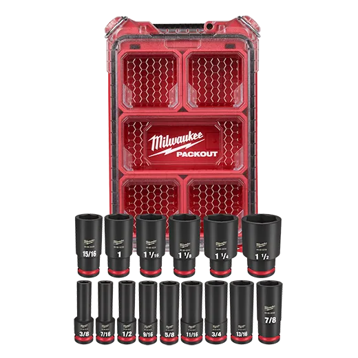 Le jeu de douilles SHOCKWAVE Impact Duty™ présente les marquages les plus audacieux et les plus durables et une durabilité extrême aux chocs dans les applications à couple élevé. Le marquage de taille estampé et rempli d'encre vous permet de sélectionner la bonne douille à chaque fois tout au long de la durée de vie de la douille. Conçu avec de l'acier forgé à haute résistance pour des performances optimisées dans les applications intensives. La géométrie hexagonale antidérapante empêche l'arrondissement des fixations. La conception à double trou Milwaukee et la rainure annulaire permettent une fixation et un retrait faciles des douilles. Les ensembles peuvent être conservés organisés dans l'organiseur compact MILWAUKEE® PACKOUT™ inclus avec un dessus transparent pour une identification facile des pièces en un coup d'œil. L'organiseur compact fait partie de notre système de stockage modulaire PACKOUT, permettant la personnalisation des systèmes de stockage pour transporter et organiser facilement les outils et les accessoires. Toutes les douilles et rallonges Milwaukee SHOCKWAVE Impact Duty™ sont couvertes par la garantie à vie de Milwaukee et répondent aux normes industrielles ASME.