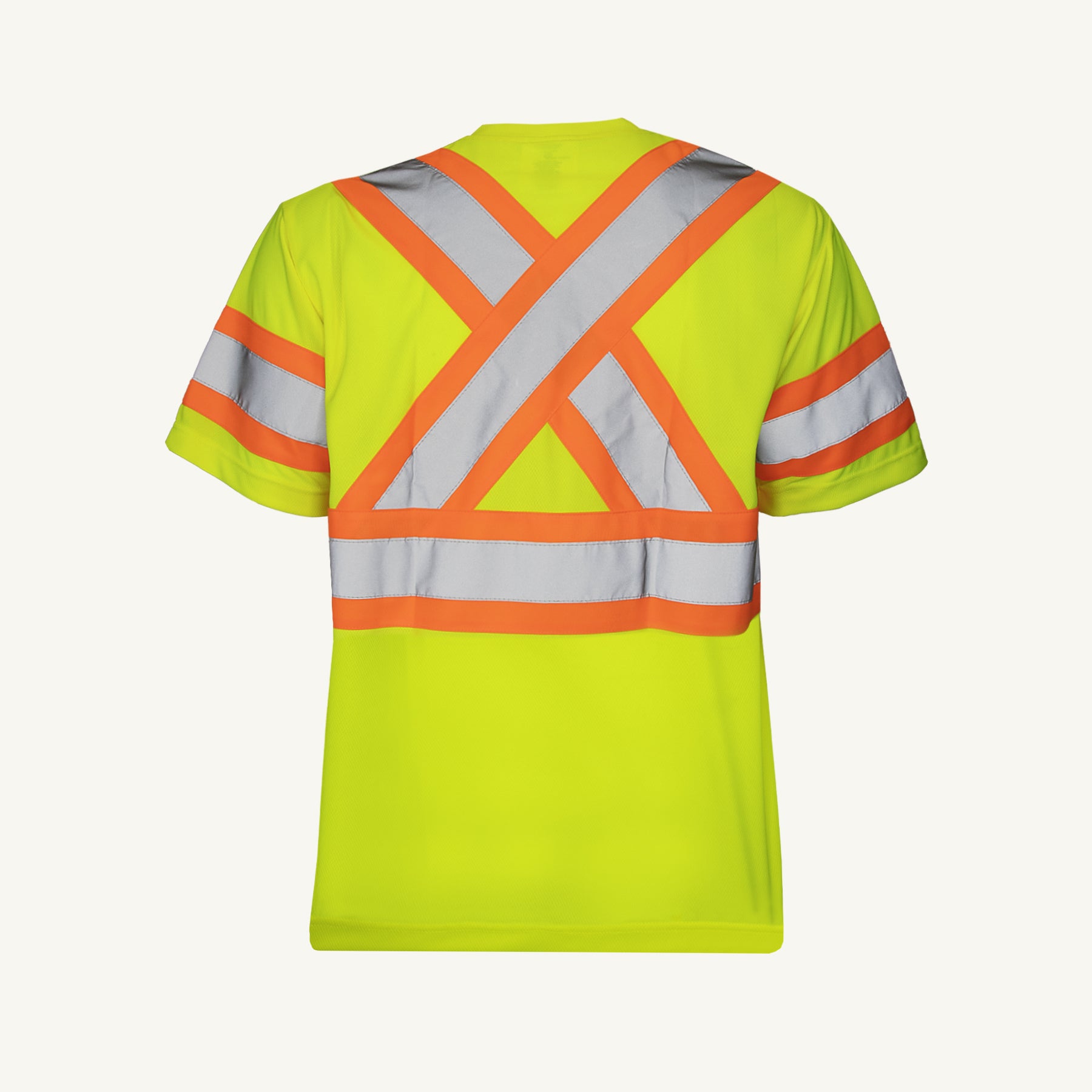 T-shirt de signalisation jaune haute visibilité avec bandes rétroréfléchissantes droites pour une visibilité à 360°