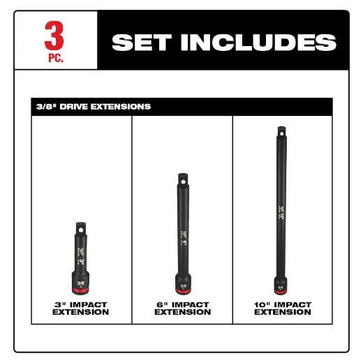 - Entraînement 3/8" Rallonges de 3", 6" et 10" pour une plus grande portée