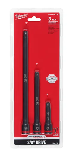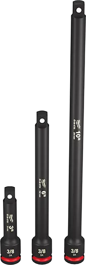 Les rallonges de douilles SHOCKWAVE™ Impact Duty™ de Milwaukee vous offrent un meilleur accès aux endroits difficiles d'accès et offrent une durabilité extrême aux chocs dans les applications à couple élevé. Nos marquages de taille gravés au laser permettent une identification rapide de la taille et de la longueur de l'entraînement. La conception à double trou et la rainure annulaire vous permettent de fixer et de retirer facilement les rallonges. Toutes les rallonges de douilles MILWAUKEE® SHOCKWAVE™ Impact Duty™ sont couvertes par notre garantie à vie et répondent aux normes industrielles ASME.
