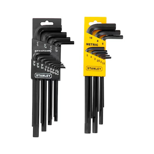 Le jeu de clés hexagonales SAE et métriques à bras long comprend 22 clés hexagonales robustes en acier antirouille dans de nombreuses tailles SAE et métriques courantes. Cet ensemble pratique est livré avec deux supports étiquetés qui permettent de trouver facilement la taille exacte dont vous avez besoin pour votre travail. Accrochez les supports au mur pour un accès et une organisation pratiques.