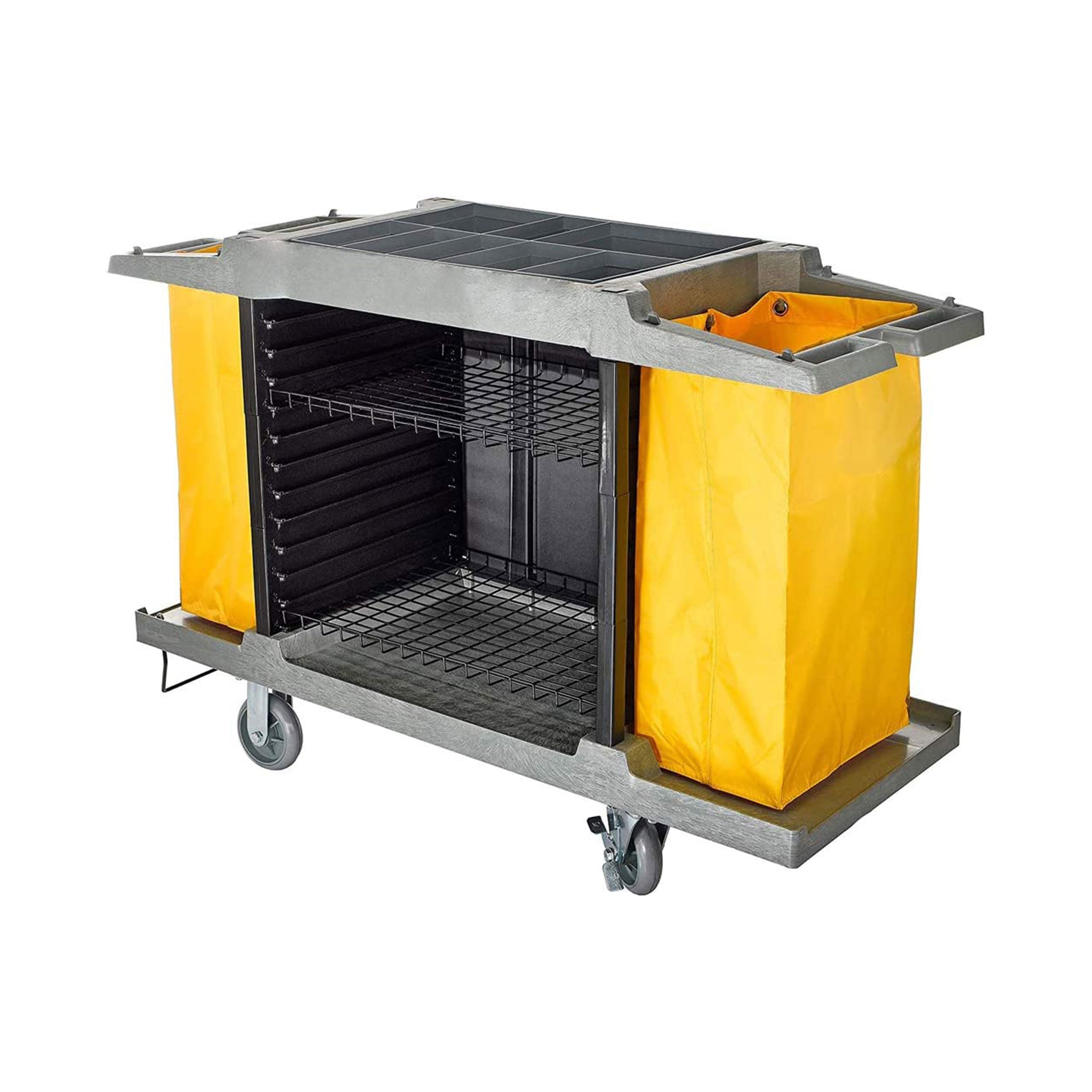 Utilisez un panier de ménage parfait pour tous vos besoins de nettoyage. Ce chariot est parfait pour le personnel d'entretien des hôtels, des écoles, des bureaux et des épiceries. Votre personnel appréciera de pouvoir organiser tous ses produits de nettoyage en un seul endroit, ce qui facilitera son travail lorsqu'il effectuera des tâches dans de grands bâtiments.