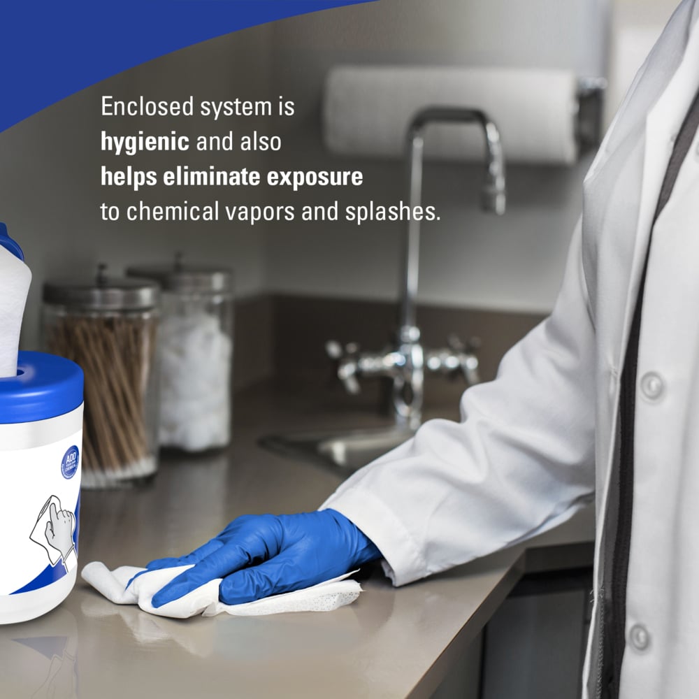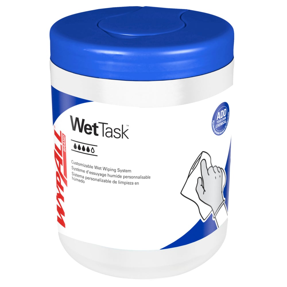 Les lingettes WypAll® CriticalClean™ WetTask™ pour eau de Javel, désinfectants et assainisseurs sont une alternative efficace et efficiente au nettoyage avec un seau/serviette ouvert ou un spray/serviette. Elles sont conçues pour les tâches critiques, telles que le nettoyage des surfaces des soins de santé et de la restauration, où des outils de nettoyage efficaces et faciles à utiliser sont de la plus haute importance. Les lingettes WypAll® CriticalClean™ meltblown sont conçues spécifiquement pour être compatibles avec les quats (c'est-à-dire les composés d'ammonium quaternaire) et l'eau de Javel afin de garantir une force active continue en PPM pendant au moins 24 heures. Et pour améliorer l'efficacité du gain de place, cet article est livré avec six rouleaux de recharge et un seau. Le système de seau fermé hermétiquement permet aux nettoyeurs et aux clients d'éviter l'exposition au brouillard de pulvérisation ainsi qu'à la vapeur et aux éclaboussures potentielles d'un seau ouvert. Grâce à son système d'essuyage jetable fermé, WetTask™ peut réduire l'utilisation de produits chimiques de 20 %, éliminer le lavage et réduire les émissions de COV pour un lieu de travail plus hygiénique et plus rentable. Enfin, les lingettes humides WypAll® CriticalClean™ WetTask™ sont désormais éligibles au recyclage via le programme RightCycle™ de Kimberly-Clark Professional®. Alors, adoptez dès aujourd'hui ce système unique de lingettes humides personnalisables et recyclables dans votre établissement !