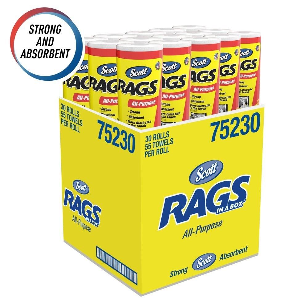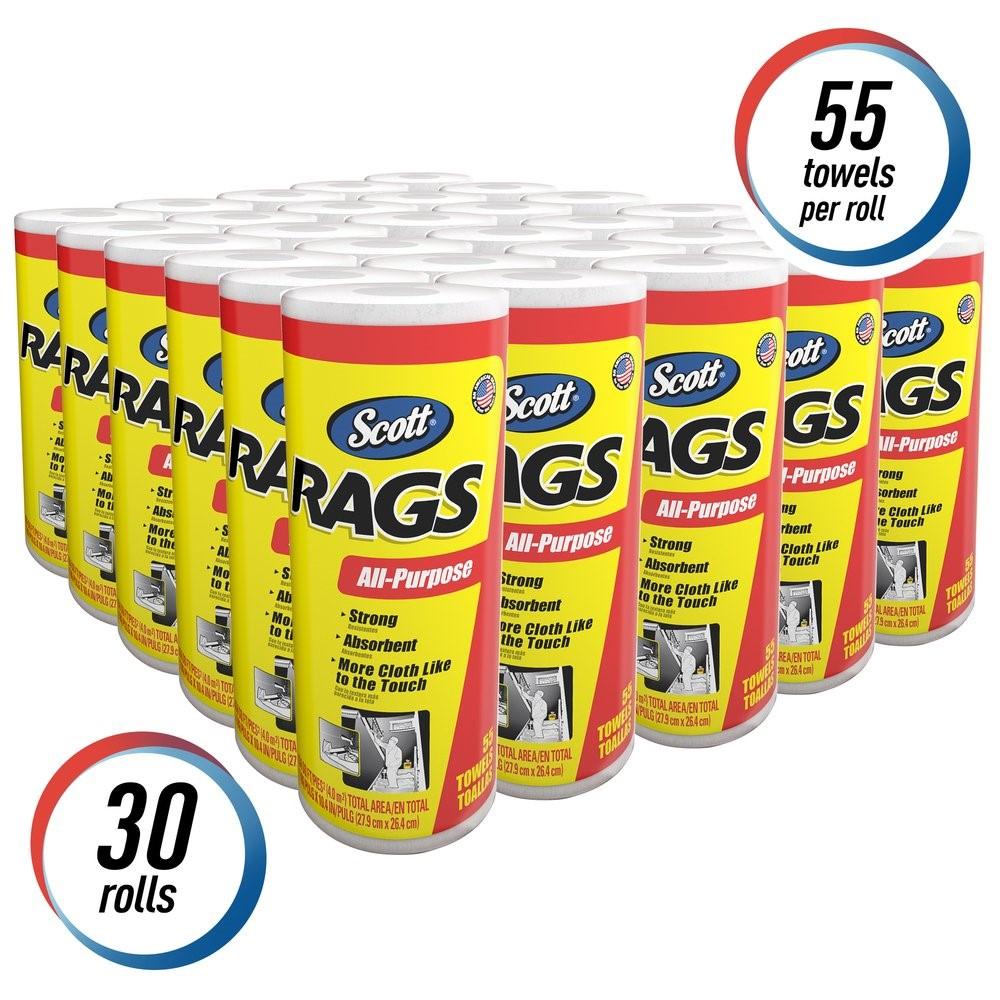 - 55 Scott® Rags / Roll, 30 rouleaux de chiffons d'atelier jetables par caisse